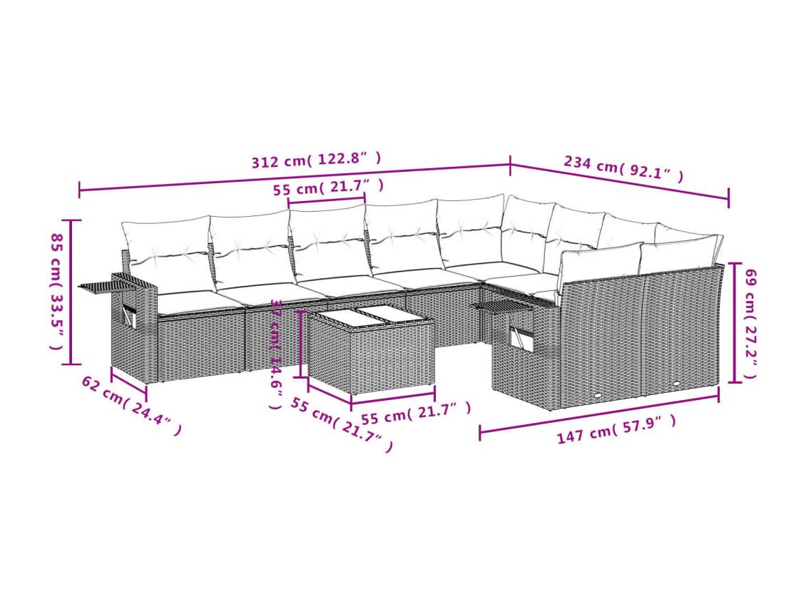 Set de sofás de jardín 9 pzas con cojines ratán sintético beige