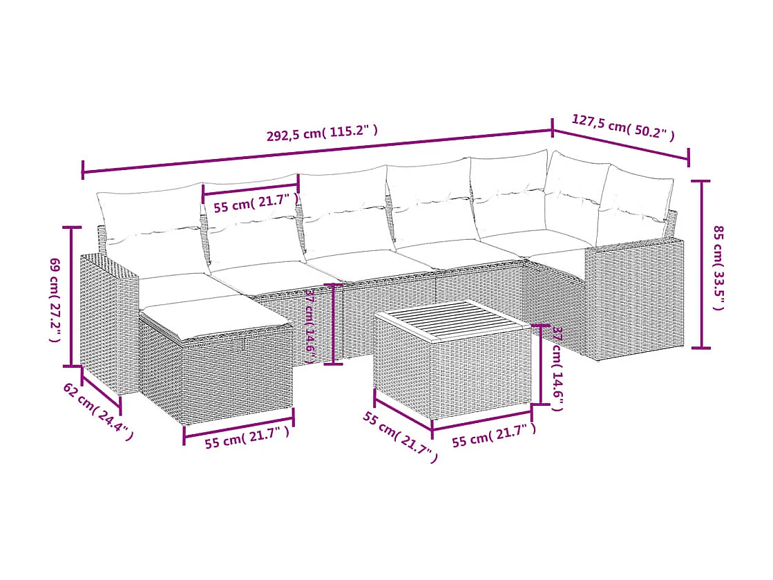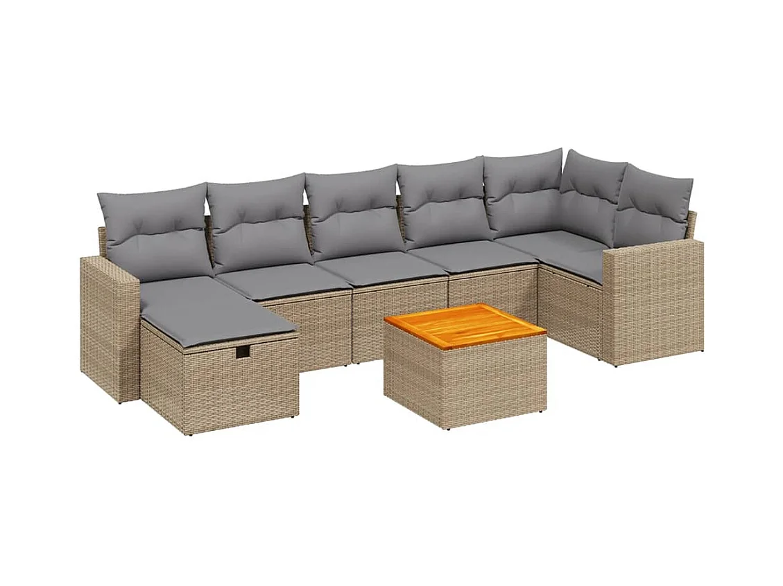 Set sofás de jardín 7 piezas y cojines ratán sintético beige