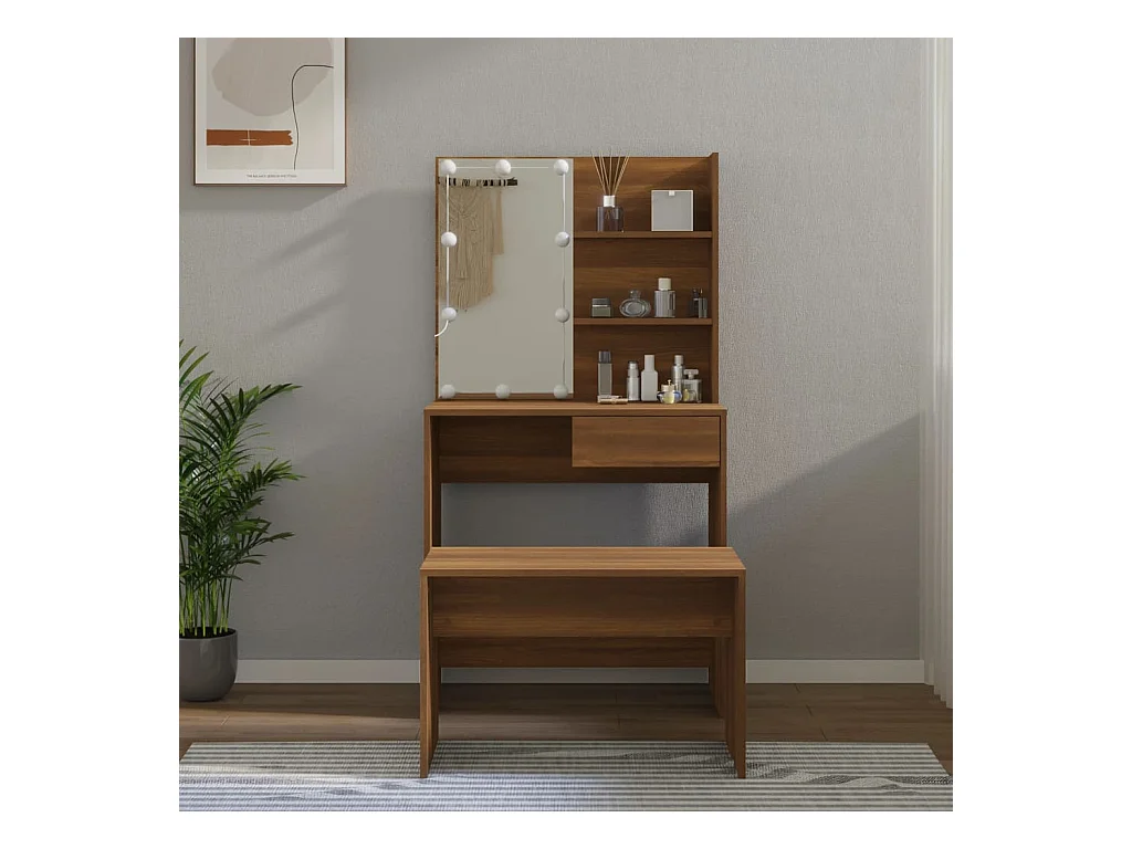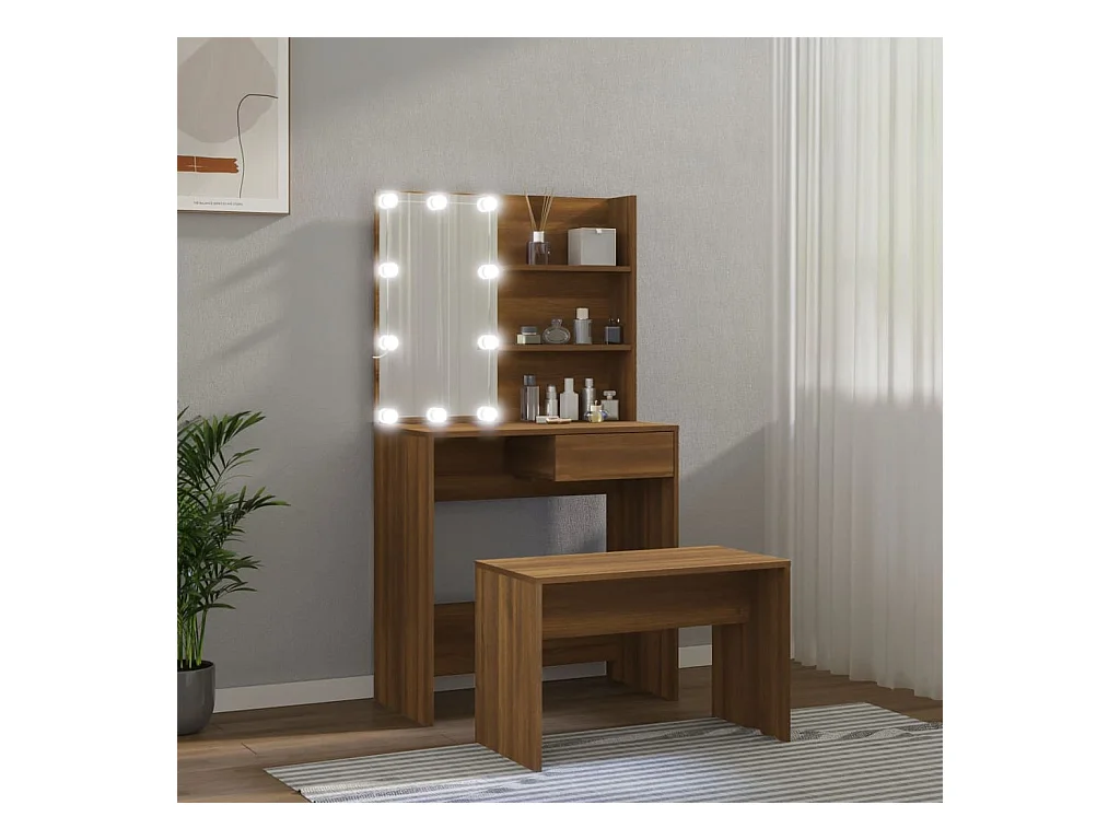 Juego de tocador con LED de madera de ingeniería de roble marrón