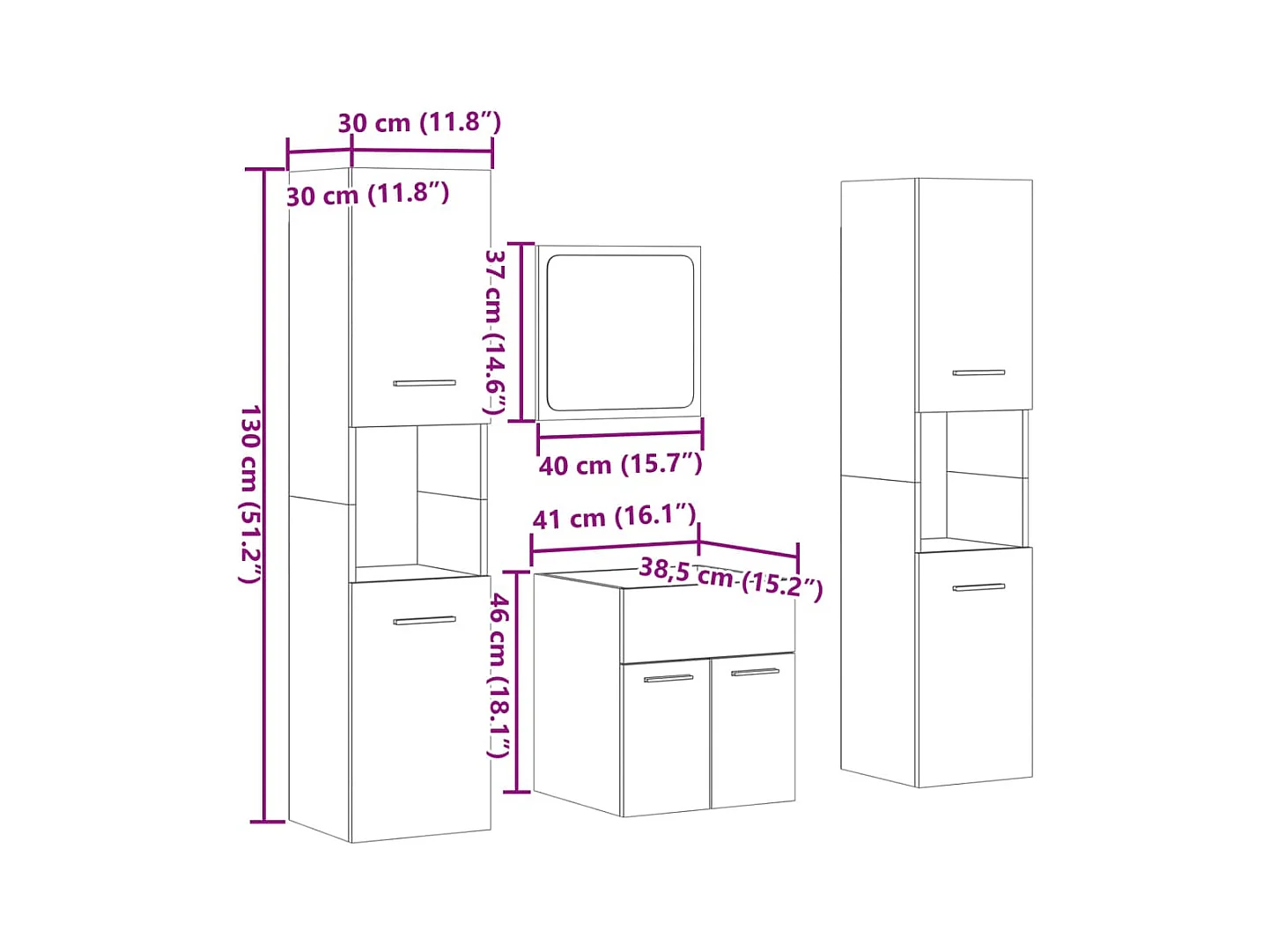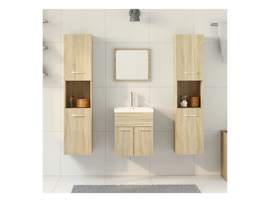 Juego de tocador de baño de 4 piezas de roble Sonoma