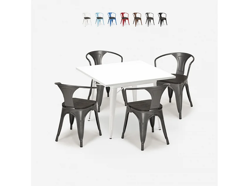 juego mesa cocina 80 x 80 cm 4 sillas estilo industrial madera acero century wood white - Gris Oscuro