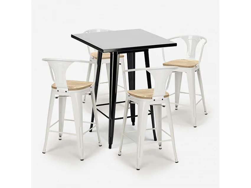 juego mesa negro 60 x 60 cm industrial 4 taburetes bucket black top light - Blanco