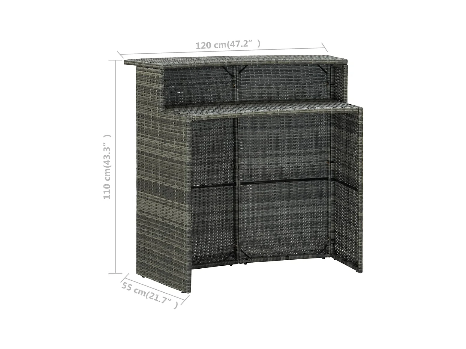 Set de muebles bar jardín 3 piezas y cojines ratán sintético gris