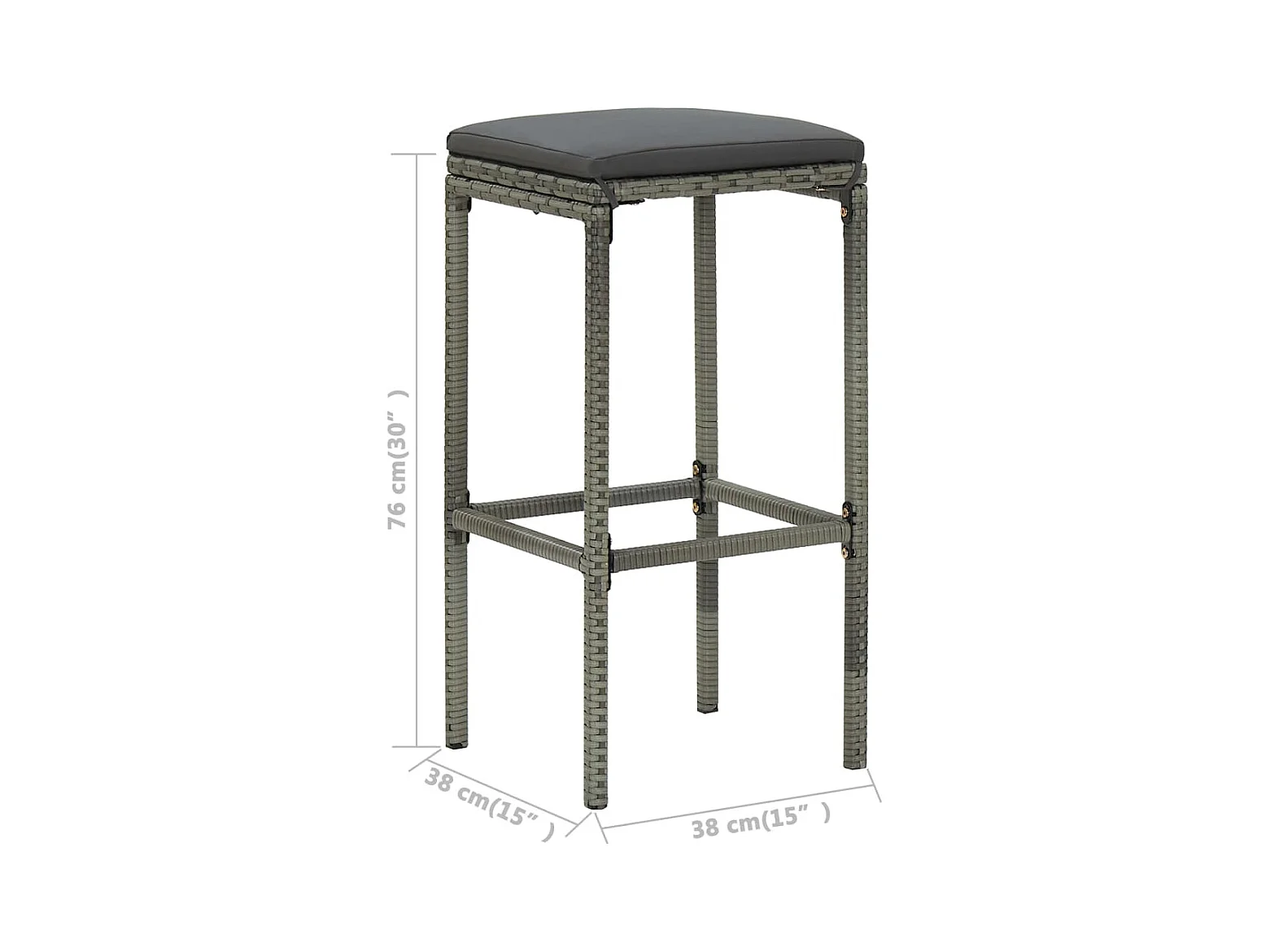 Set de bar para jardín 5 piezas y cojines ratán sintético gris