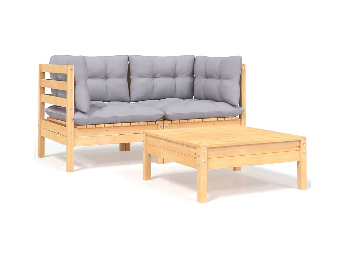 Juego muebles de jardín 3 pzas cojines gris madera pino maciza KOW19941