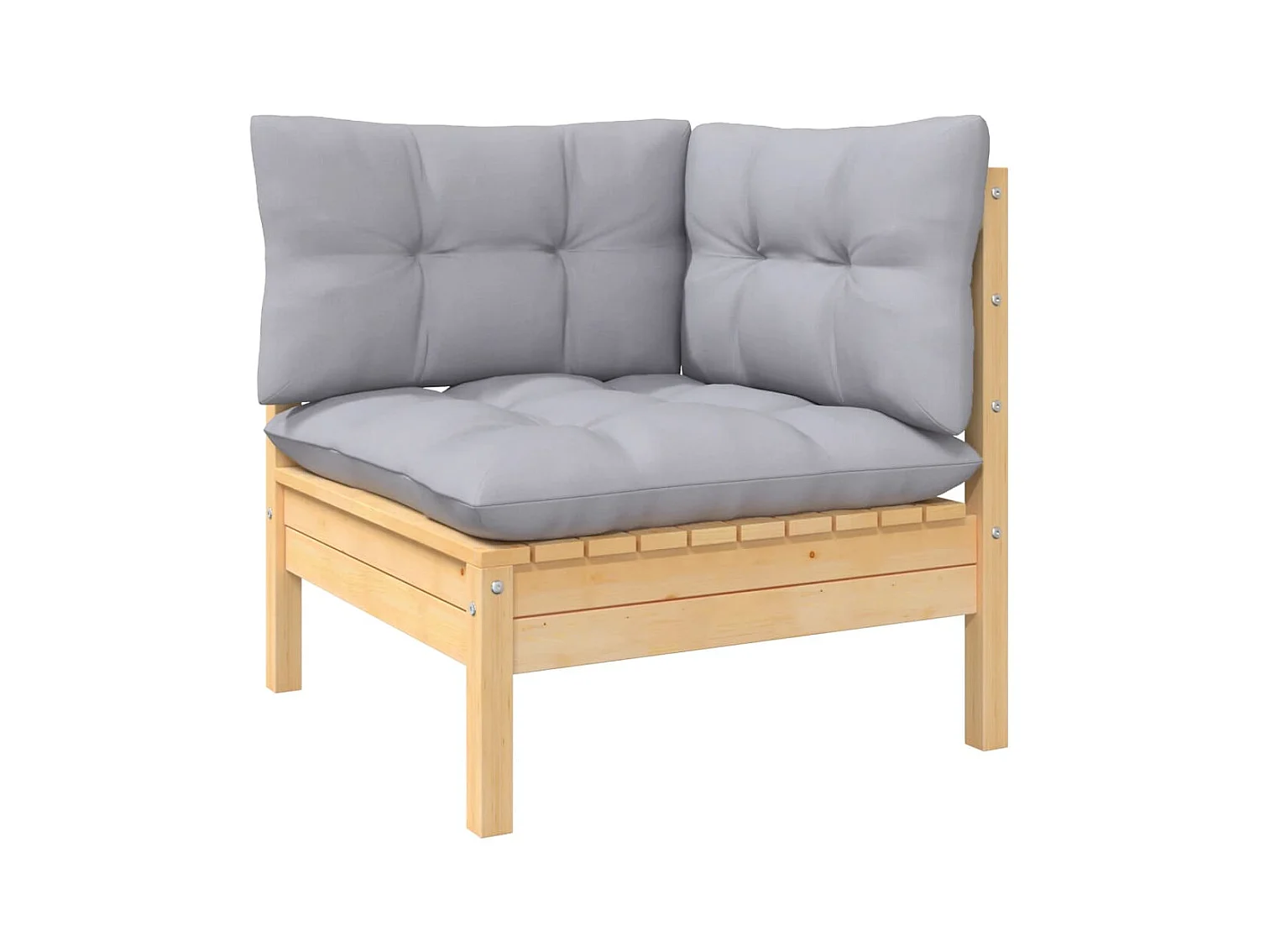 Juego muebles de jardín 3 pzas cojines gris madera pino maciza KOW48816