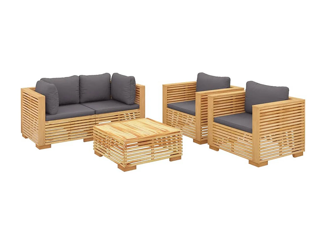 Juego muebles de jardín 5 piezas y cojines madera maciza teca
