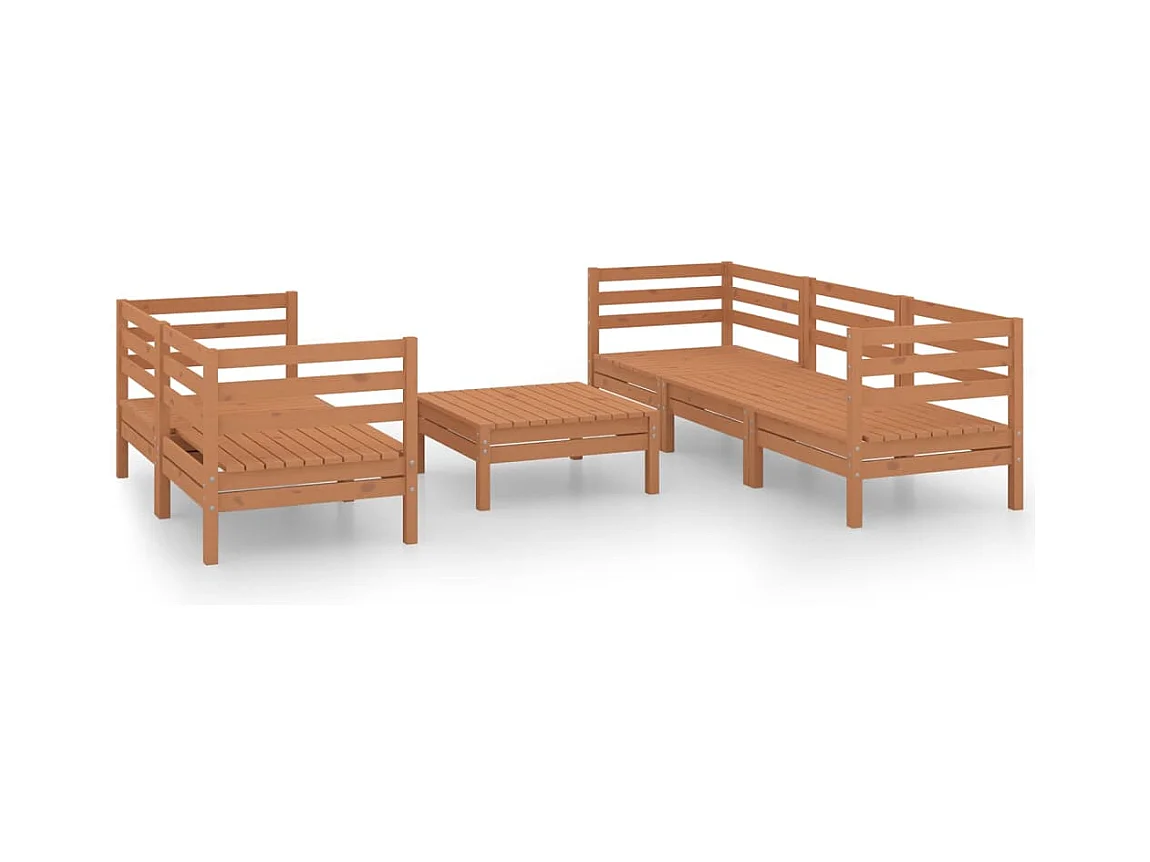 Juego muebles de jardín 6 piezas madera maciza pino marrón miel