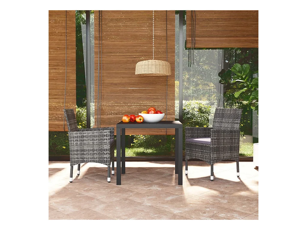 Set comedor de jardín 3 piezas con cojines ratán sintético gris ES684693