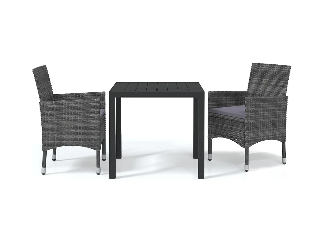 Set comedor de jardín 3 piezas con cojines ratán sintético gris ES886279