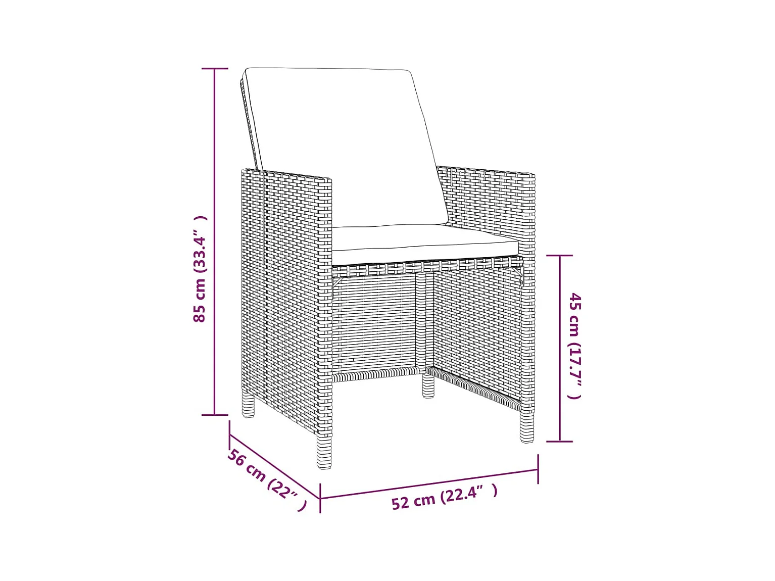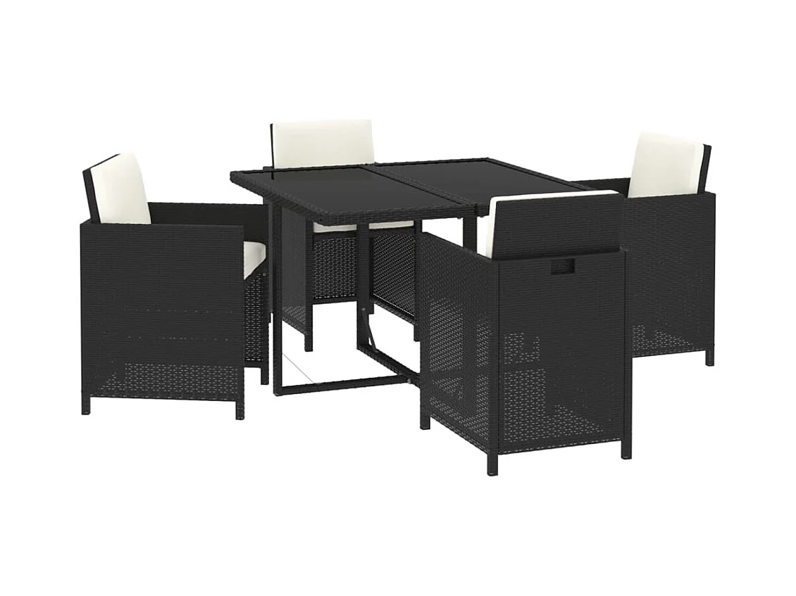 Juego comedor jardín 5 piezas con cojines ratán sintético negro