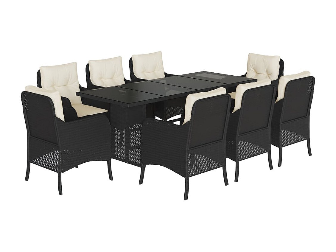 Emory Set de comedor de jardín 9 pzas y cojines ratán sintético negro