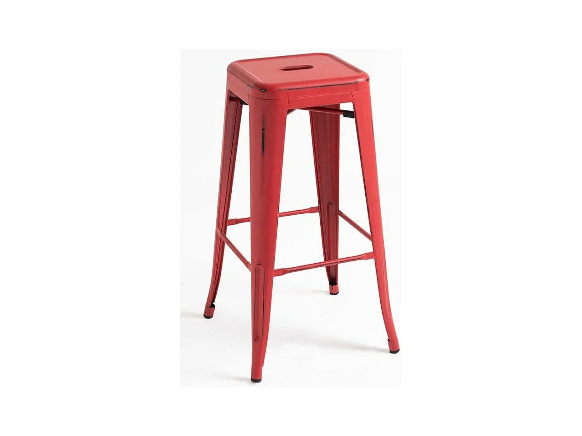 Lote de 4 taburetes de bar estilo vintage en metal, color rojo - Colección LIVE