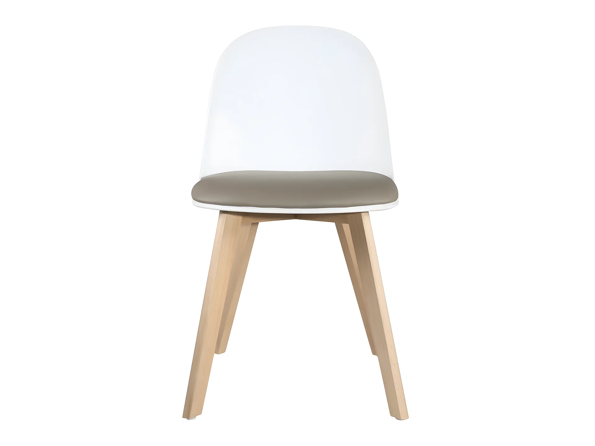 Juego de 2 sillas escandinavas para cocina, patas de madera de haya clara, cojín de cuero sintético acolchado UFI (blanco gris)