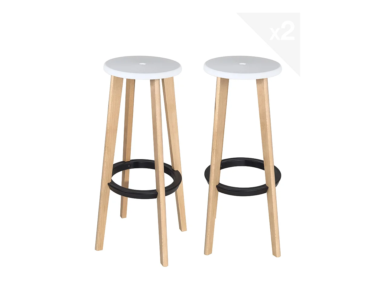 Juego de 2 taburetes de cocina y bar escandinavos redondos, altura de 76 cm, madera de haya clara KIBI (blanco)