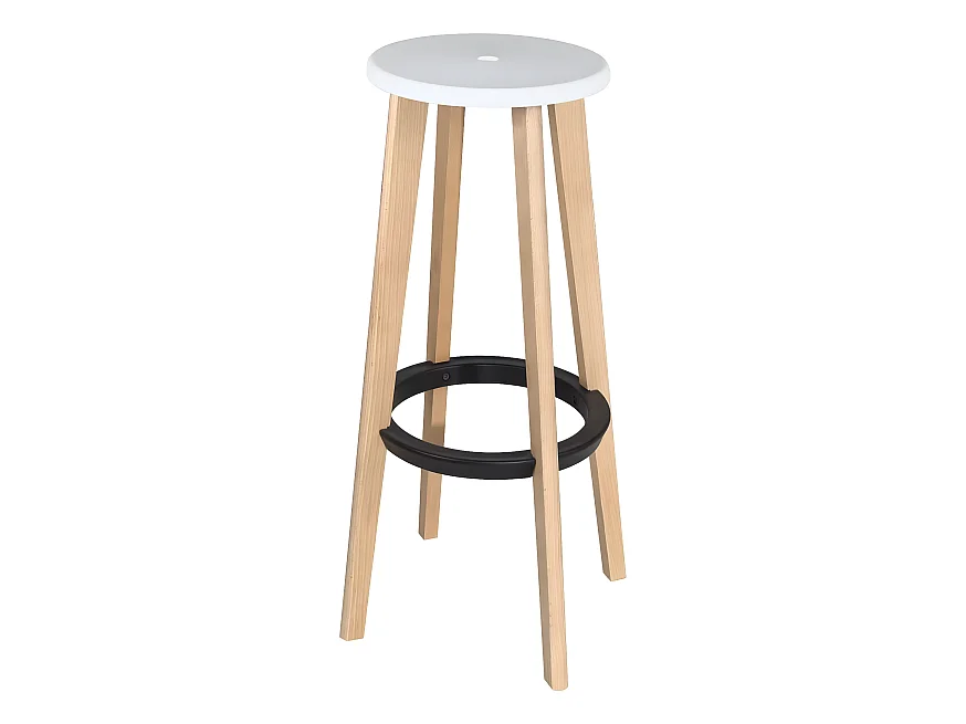 Taburete nórdico con patas de madera de haya (75cm) - Daxer - Blanco