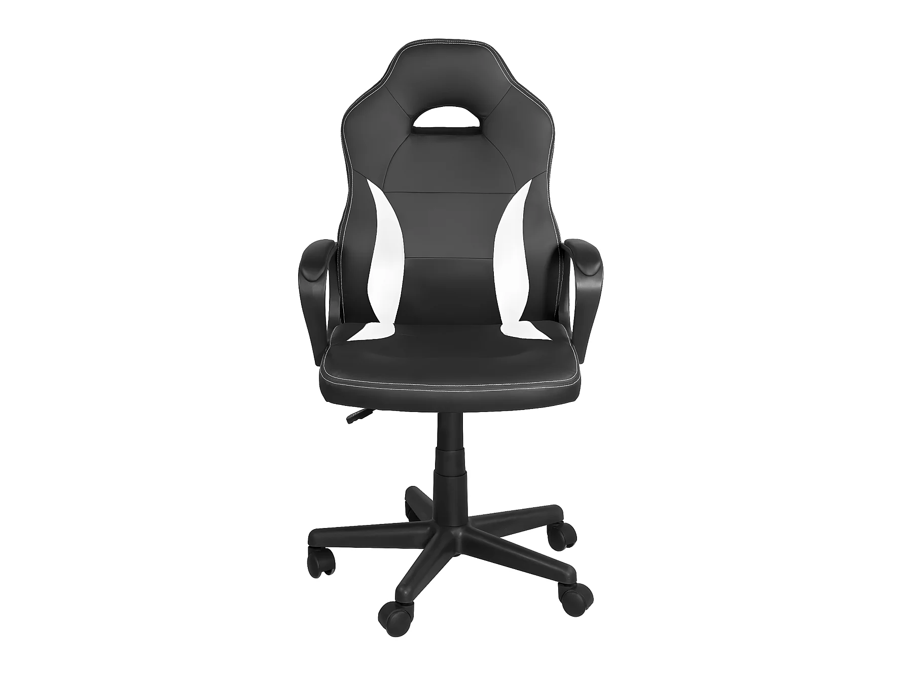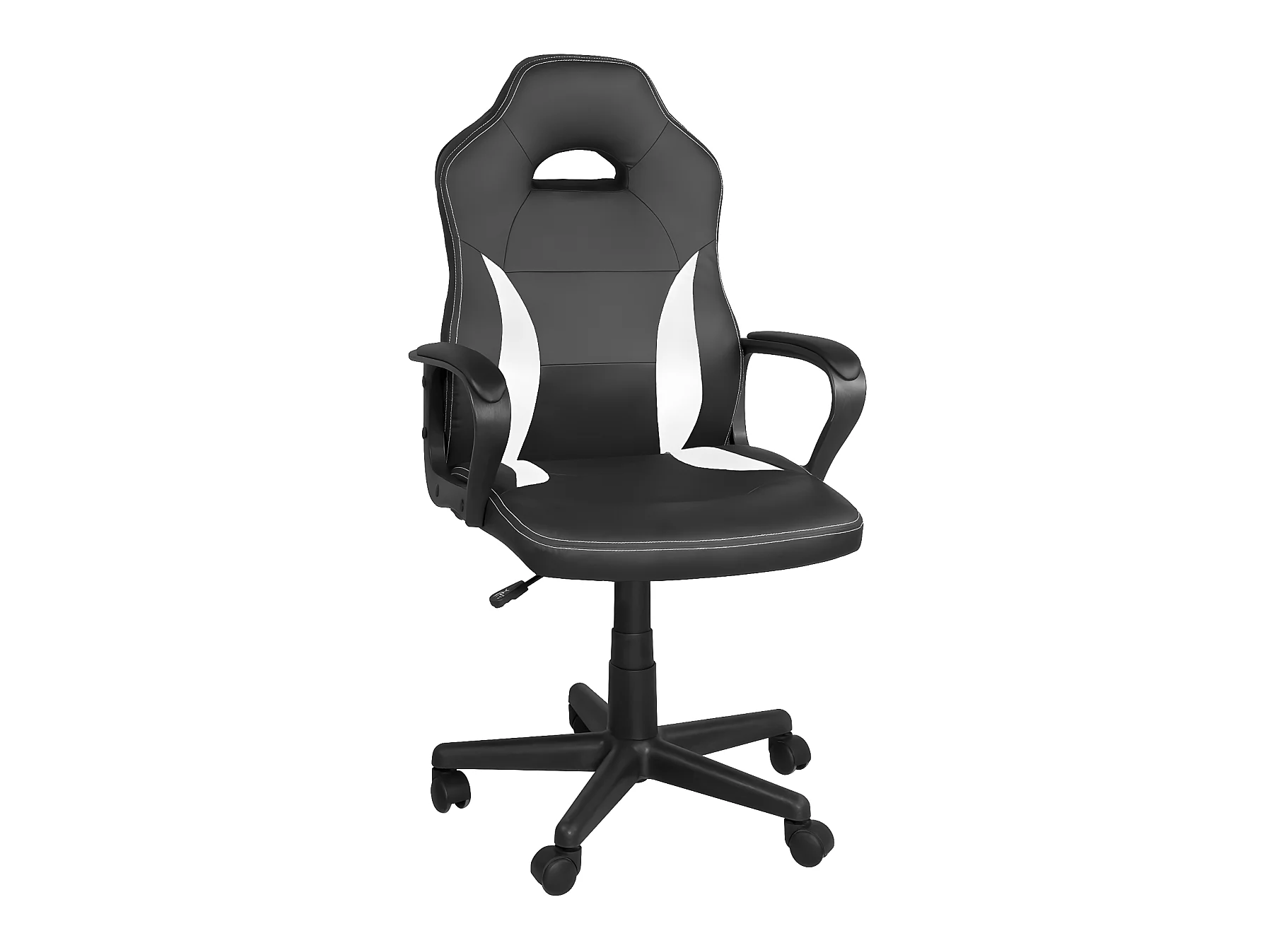 Silla gamer junior, altura ajustable, asiento de cuero sintético bicolor, giratoria 360°, reposabrazos acolchados, ruedas WAN (negro blanco)
