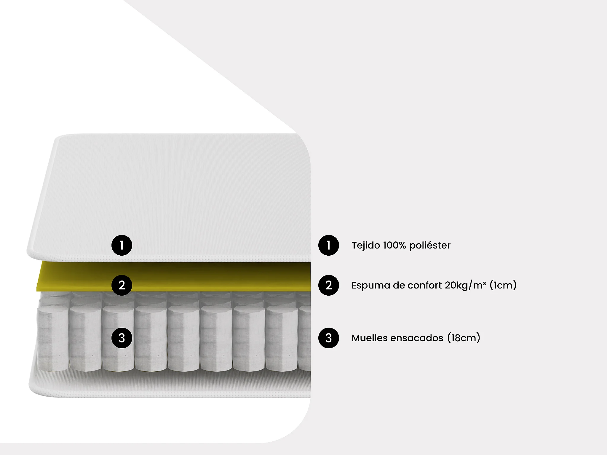 Conjunto de somier tapizado de 90 x 190 cm + colchón de muelles ensacados de 19 cm de grosor - KIJAL de YSMÉE