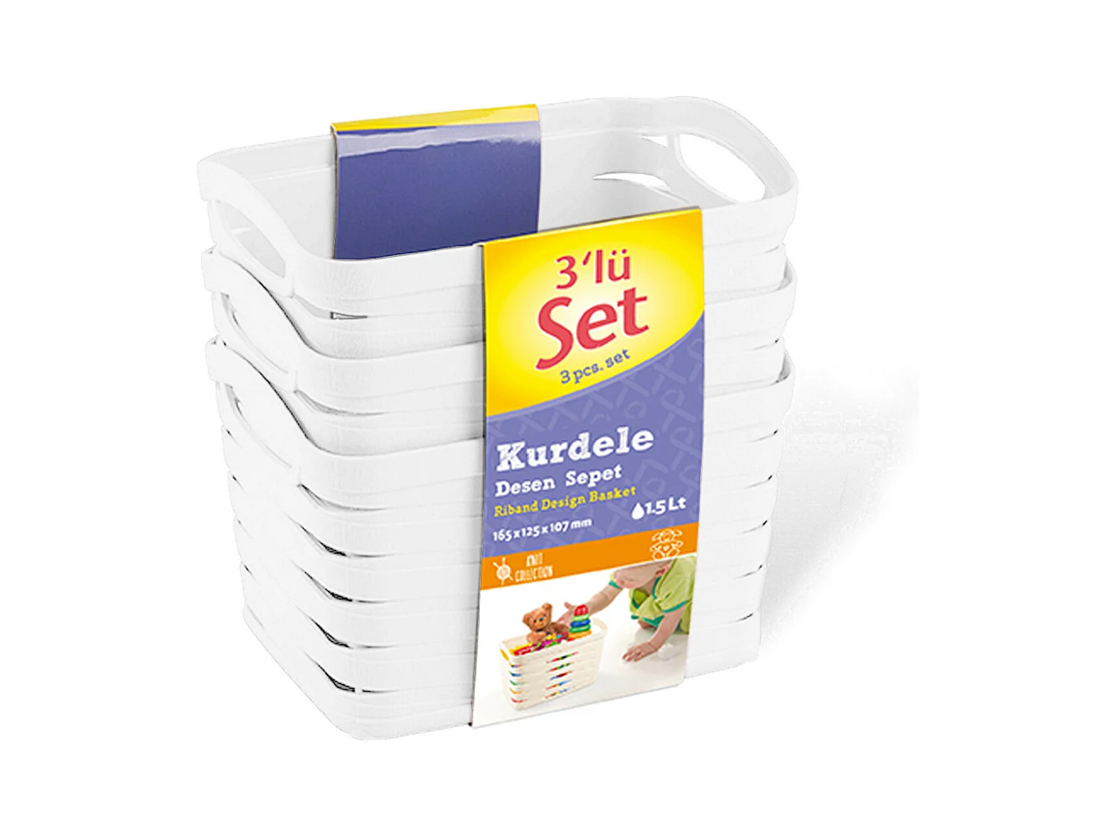 Kit 3 Cestas Rectangulares 1,5 Litros Blanco 7house