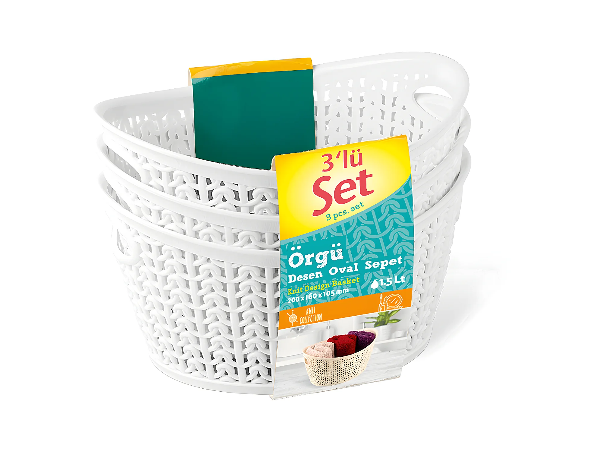 Kit 3 Cestas Ovaladas 1,5 Litros 7house