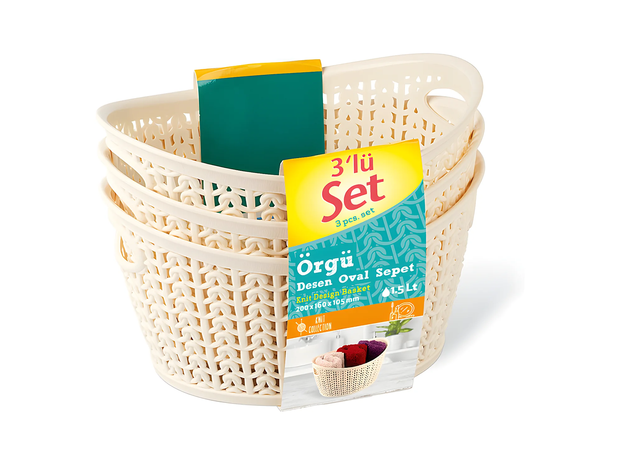 Kit 3 Cestas Ovaladas 1,5 Litros 7house