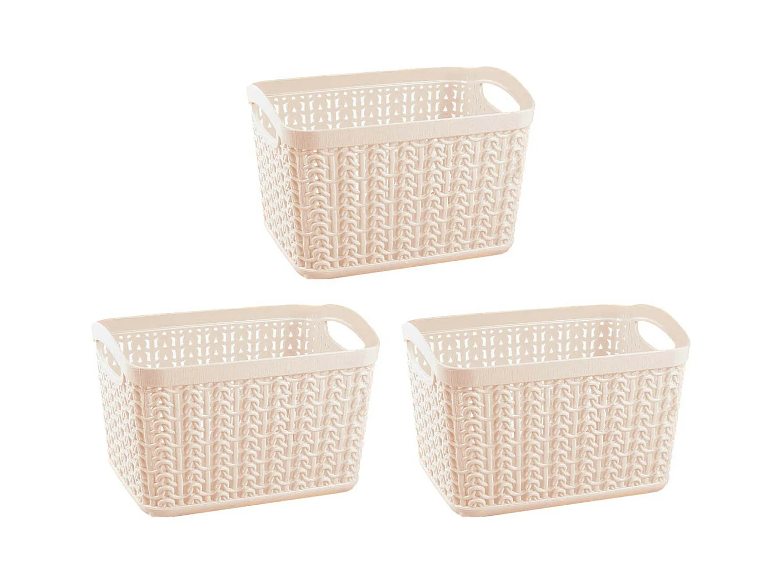 Kit 3 Cestas Medianas Rectangulares 1,5 Litros Beige 7house