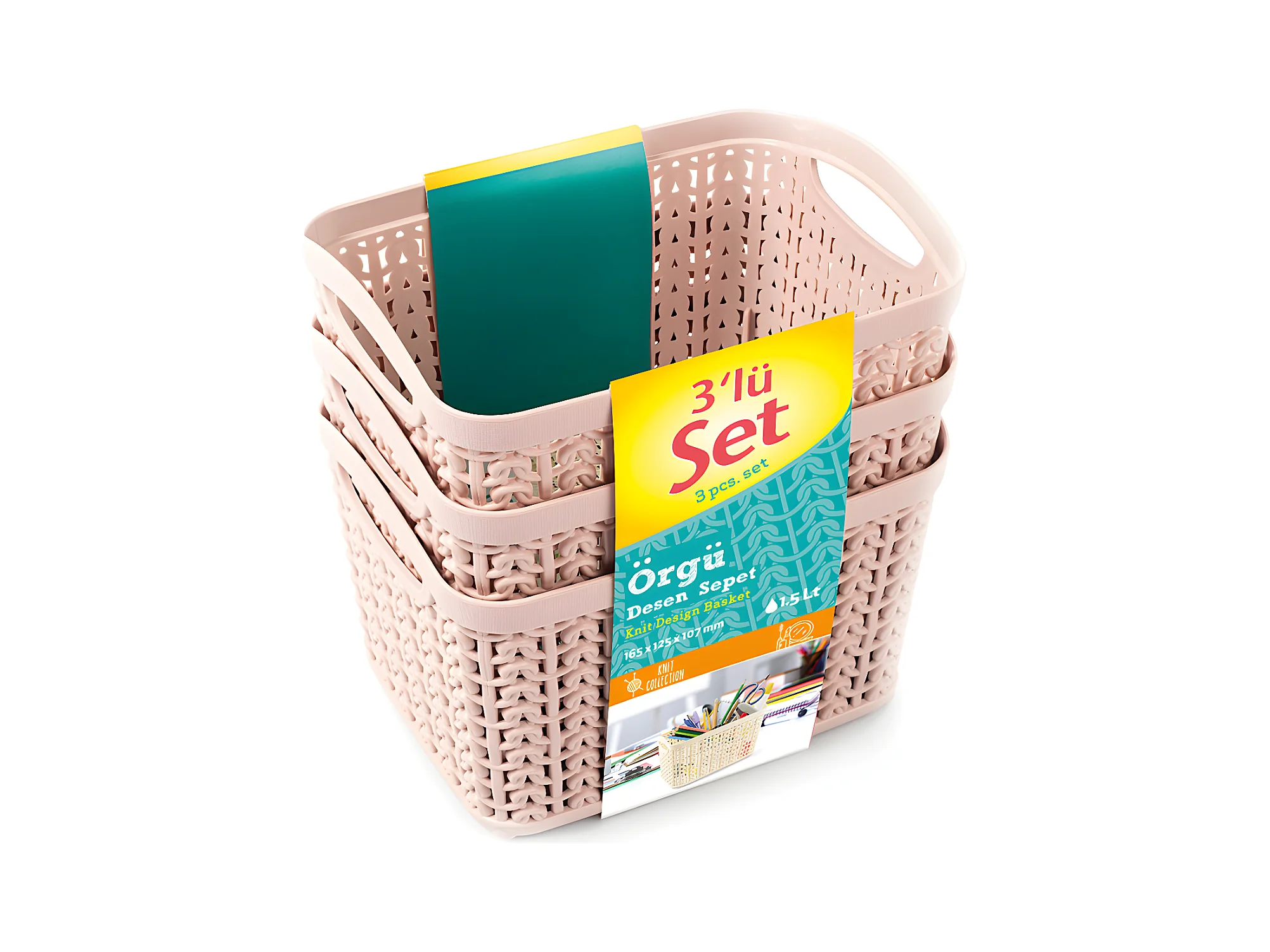 Kit 3 Cestas Rectangulares 1,5 Litros Rosa 7house