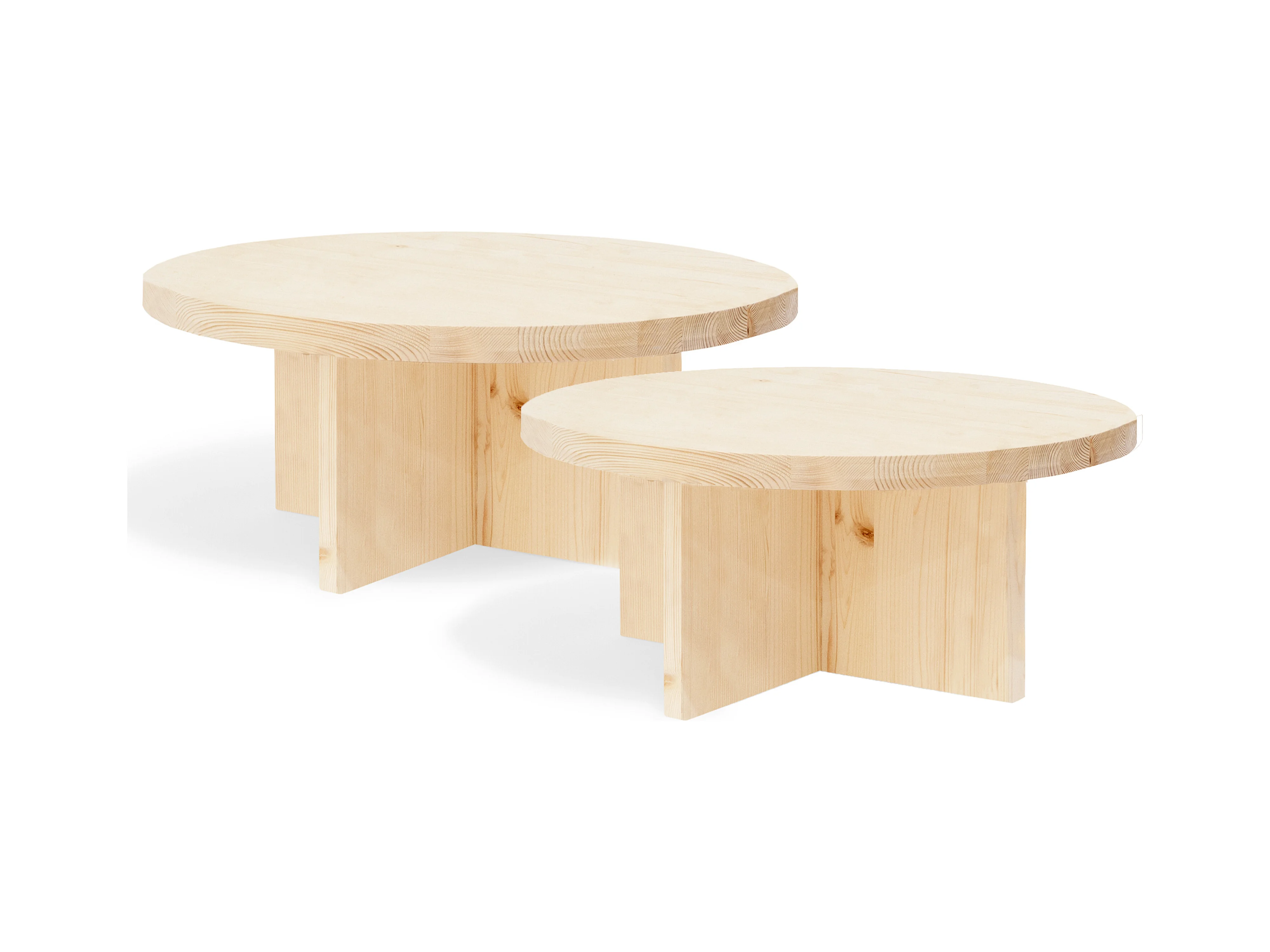 Kit de 2 mesas de centro redondas de madera de abeto Decowood en color natural de Ø60cm - TOKYO y Ø80cm - TOKYO - DECOWOOD