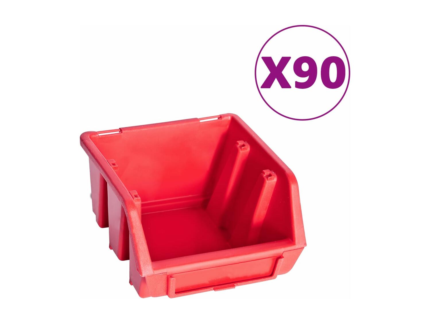 Kit de contenedores y paneles de pared 96 piezas caja apilable sistema de almacenamiento de herramientas garaje taller de bricolaje rojo y negro 02_0003854