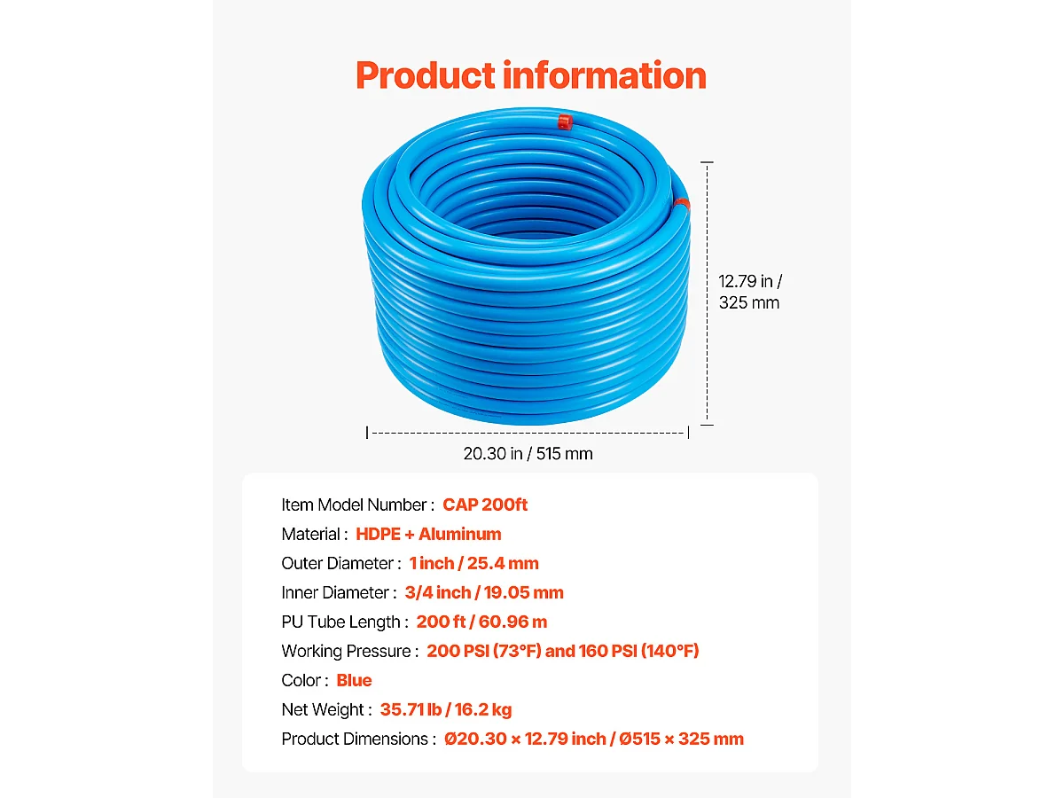 Kit de Tubería SucceBuy de Compresor de Aire 7.62/10.16cm x 6096cm HDPE-Aluminio, Azul