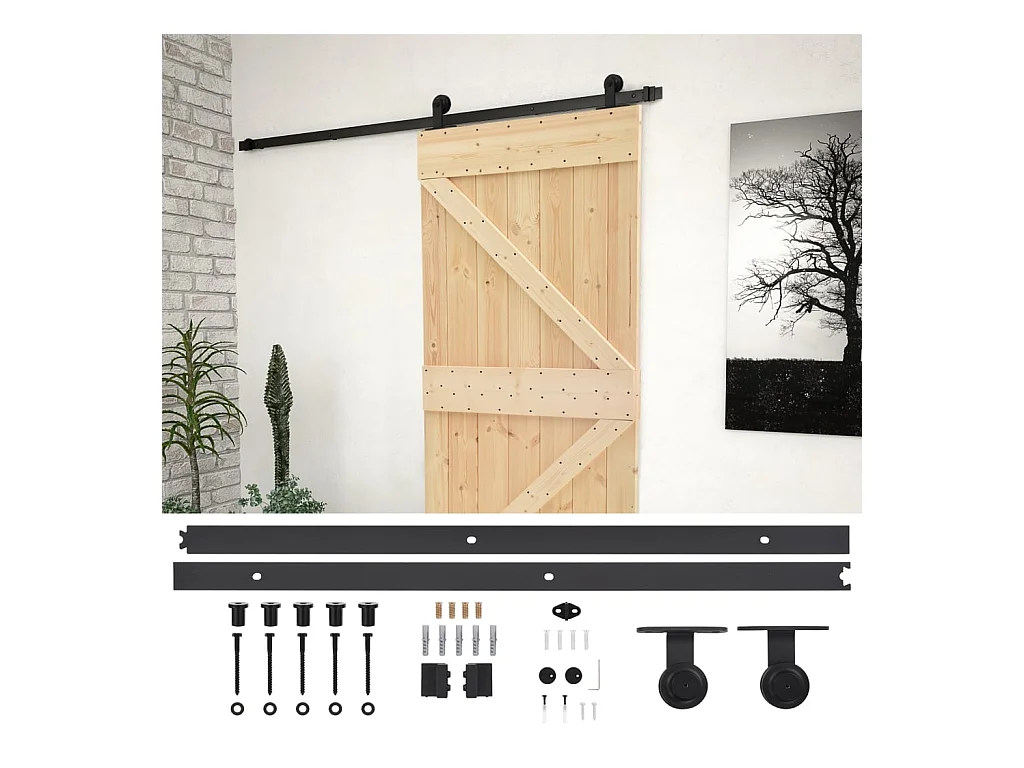Kit puerta corredera y herrajes 100x210 cm Pino macizo