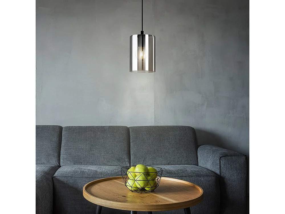 Lampadario Industrial Cadaques 1 Luce Acciaio Nero Cilindro