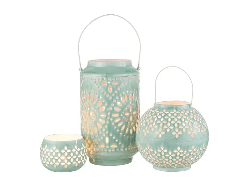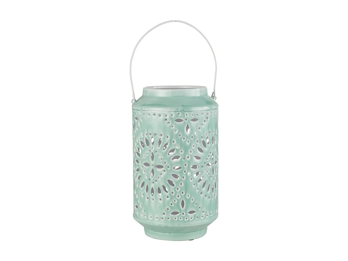 Lámpara alta perforada de hierro azul 17x17x30cm