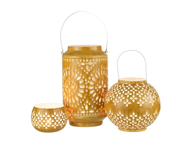 Lámpara alta perforada de hierro ocre 17x17x30cm