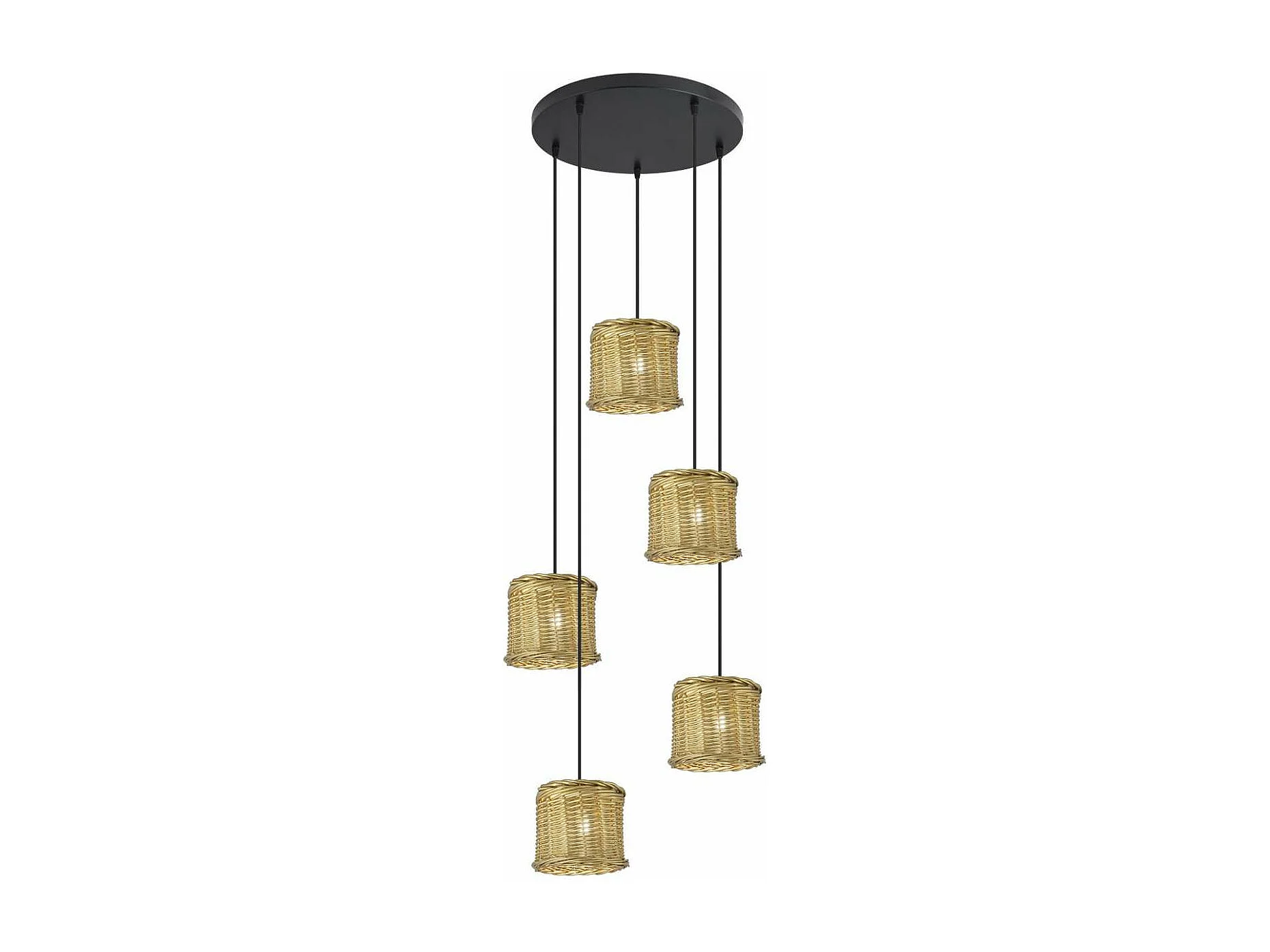 Lámpara circular 5 colgantes Georgina acabado mimbre 25 cm(alto) 50 cm(ancho) 50 cm (fond