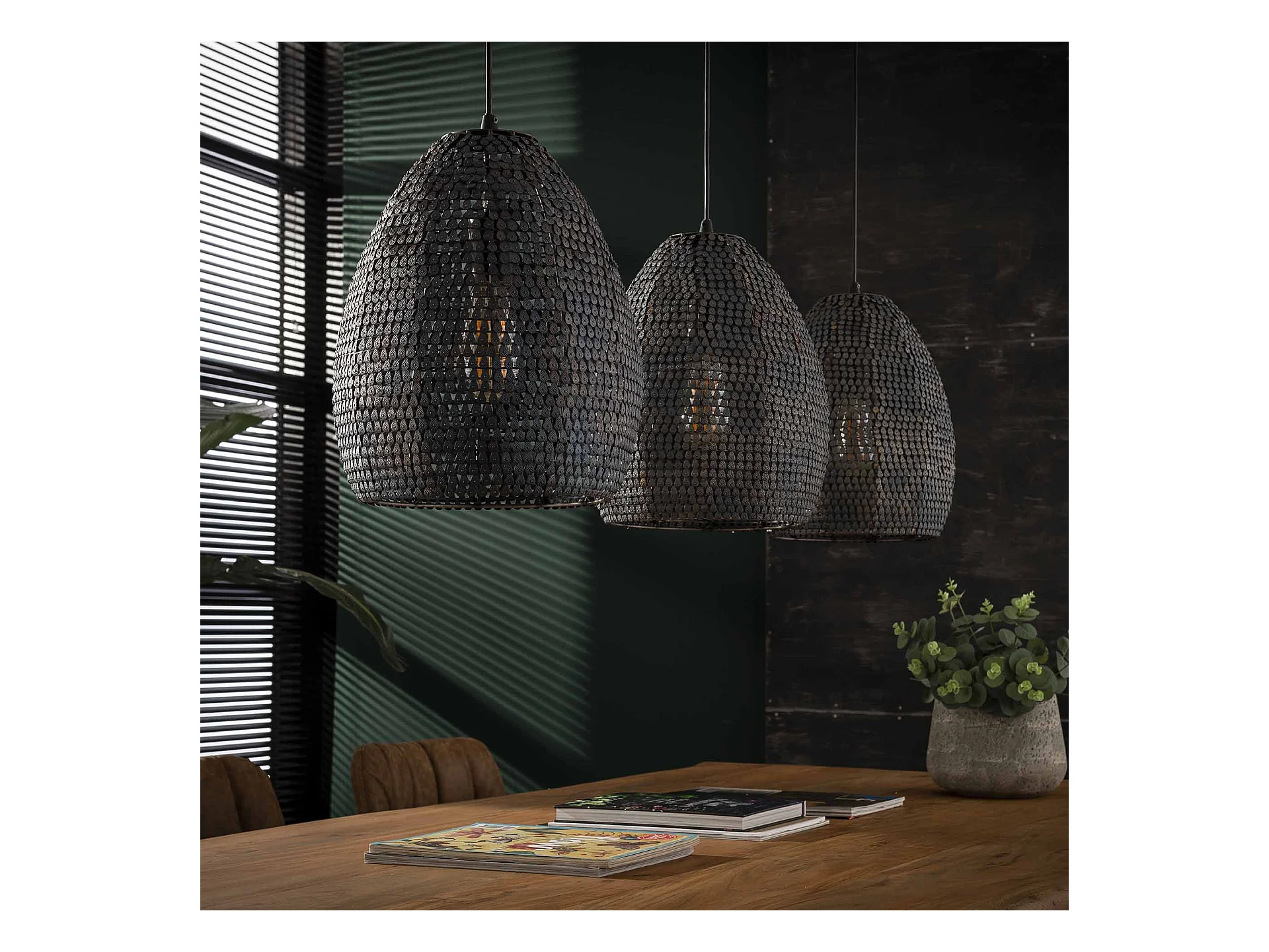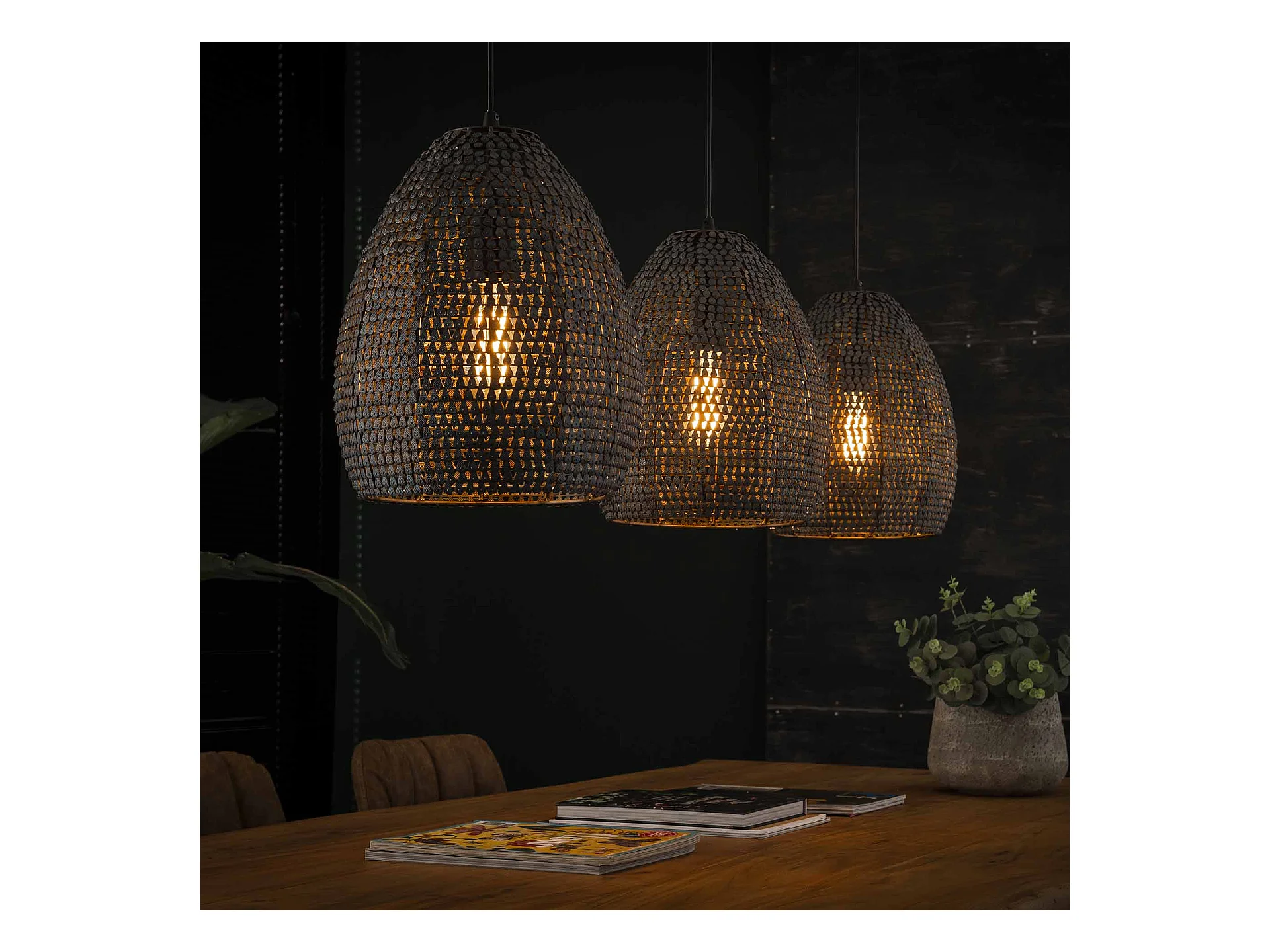 Lámpara colgante - 3 lámparas colgantes ovaladas de metal de Ø26 - Armadura - Acabado quemado