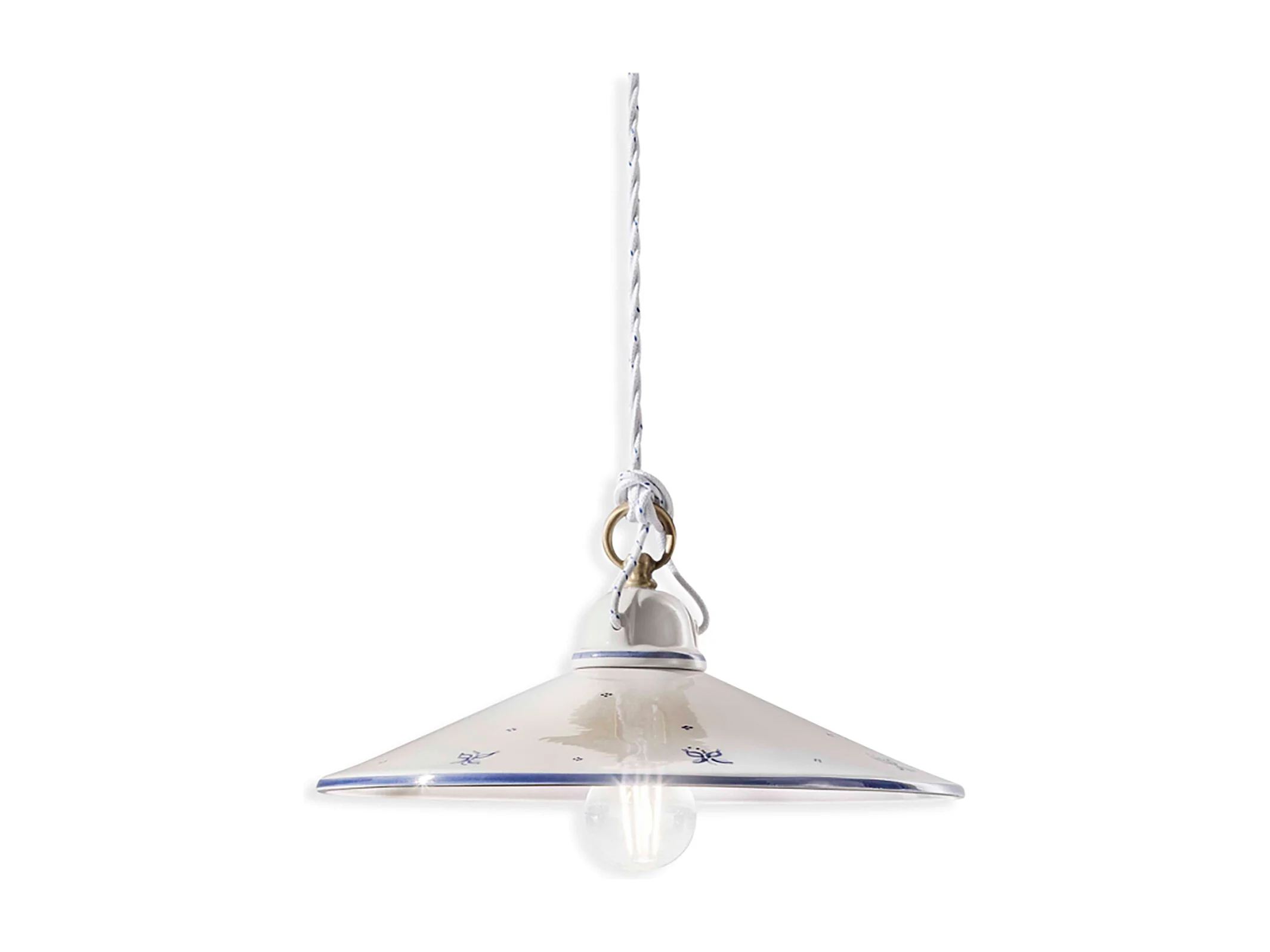 Sospensione Classica Asti Ceramica E Ottone Decorato Filo Blu 35Cm 1 Luce E27