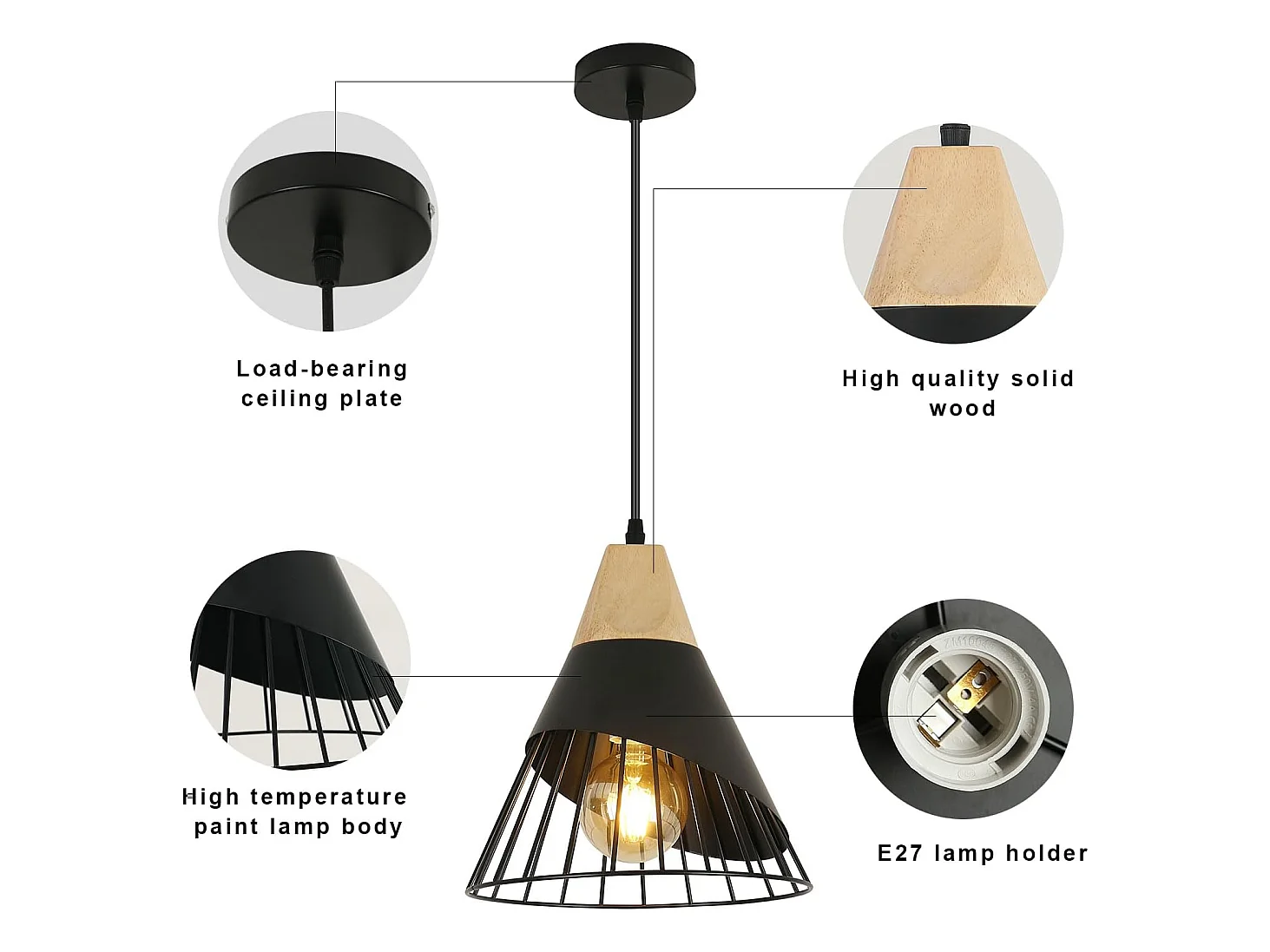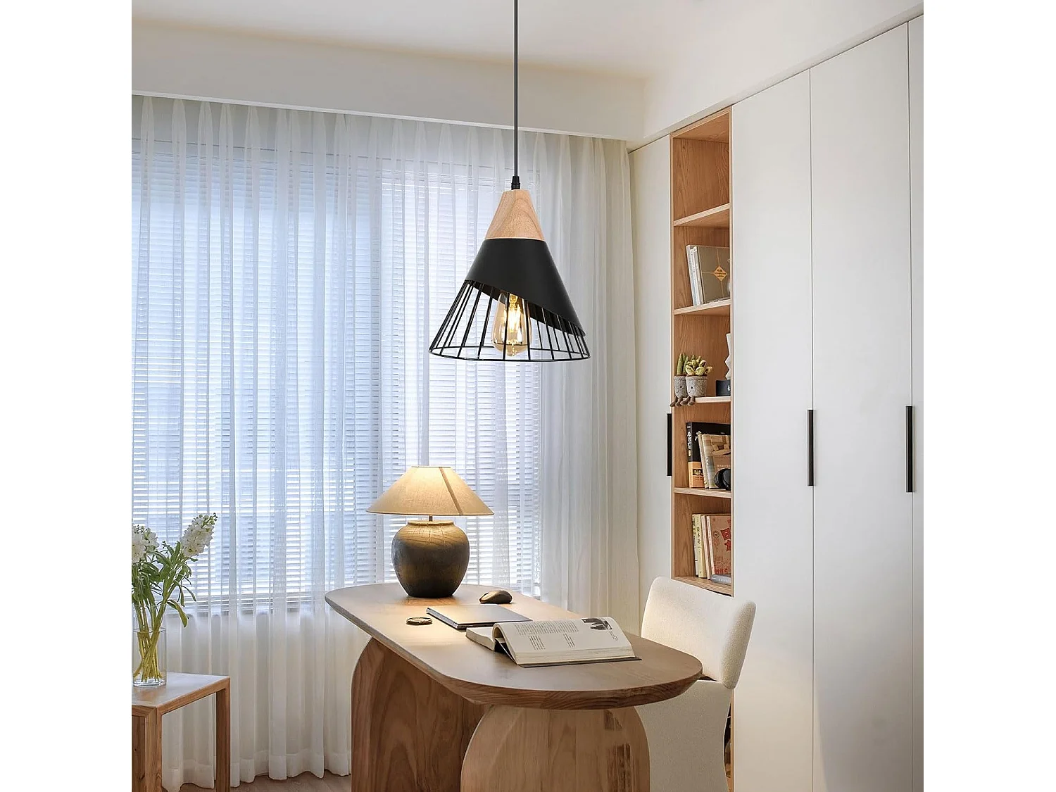 Lámpara colgante de araña vintage - negro - 25 * 25 * 30 cm - madera y hierro - sin bombilla