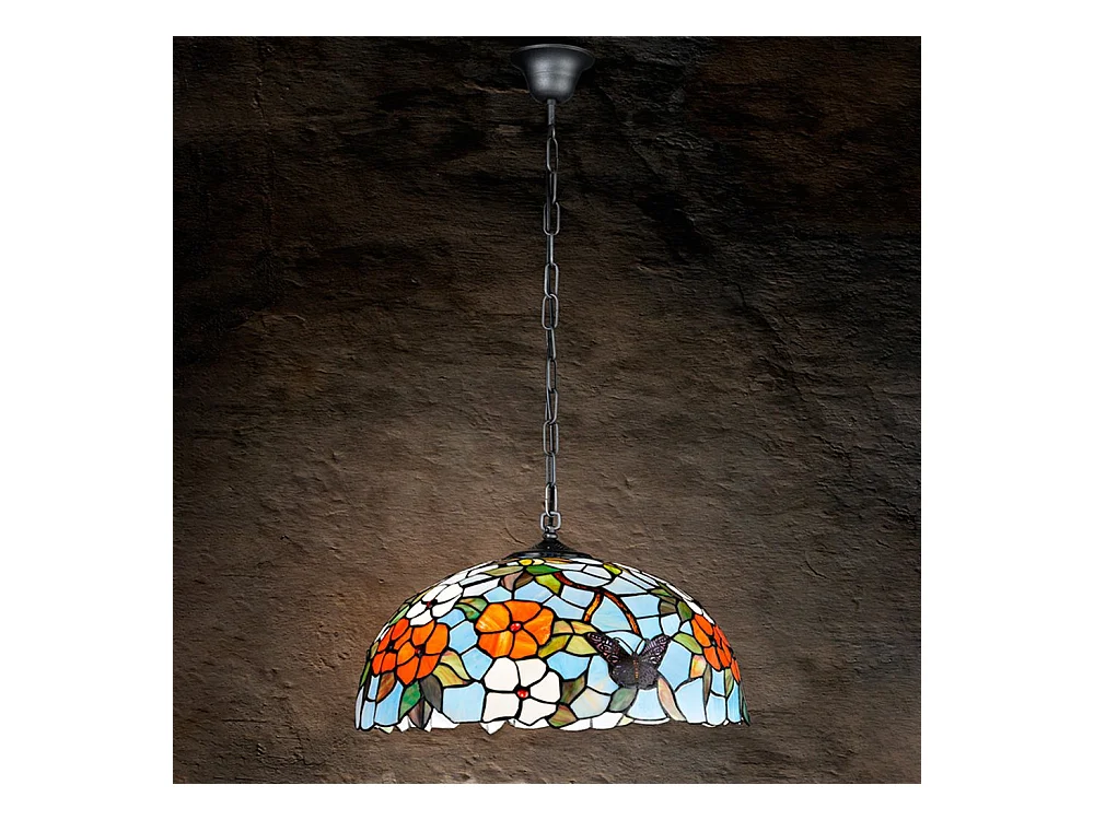 Sospensione Tiffany In Vetro Multicolor Con Catena D.45 Cm