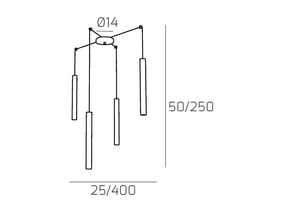 Round Tube Sospensione 4 Luci Marrone Cavo Cm.250 Con Base