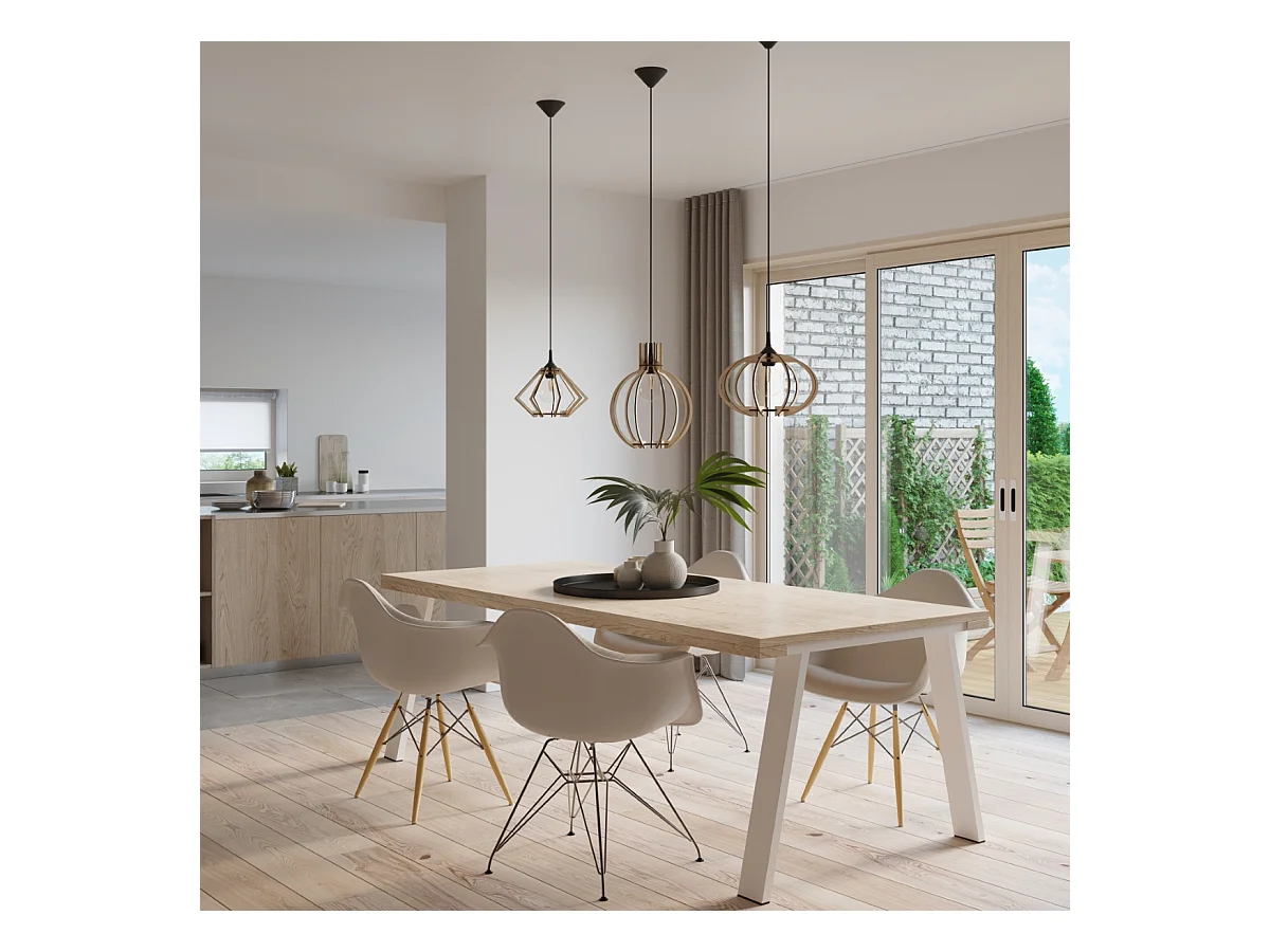 Lampada a sospensione in filo di legno naturale E27 Lámpara colgante con marco de alambre Madera natural E27