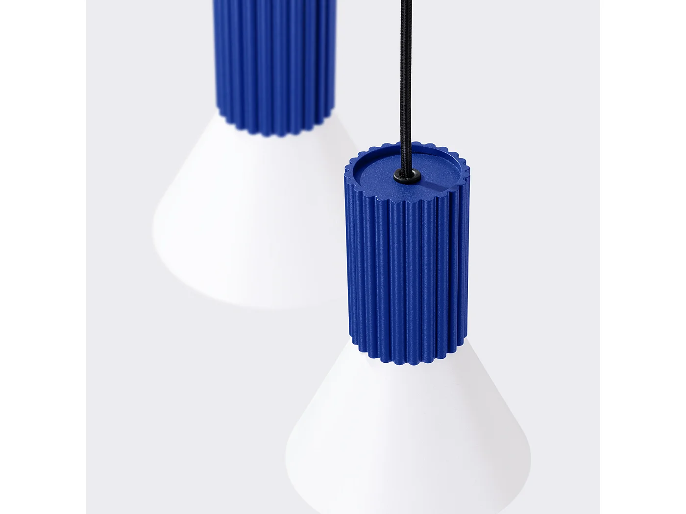Lámpara colgante Estria desván de acero/aluminio - 3 fuentes luminosas - L.30 x A.120 cm - blanco/ultramar