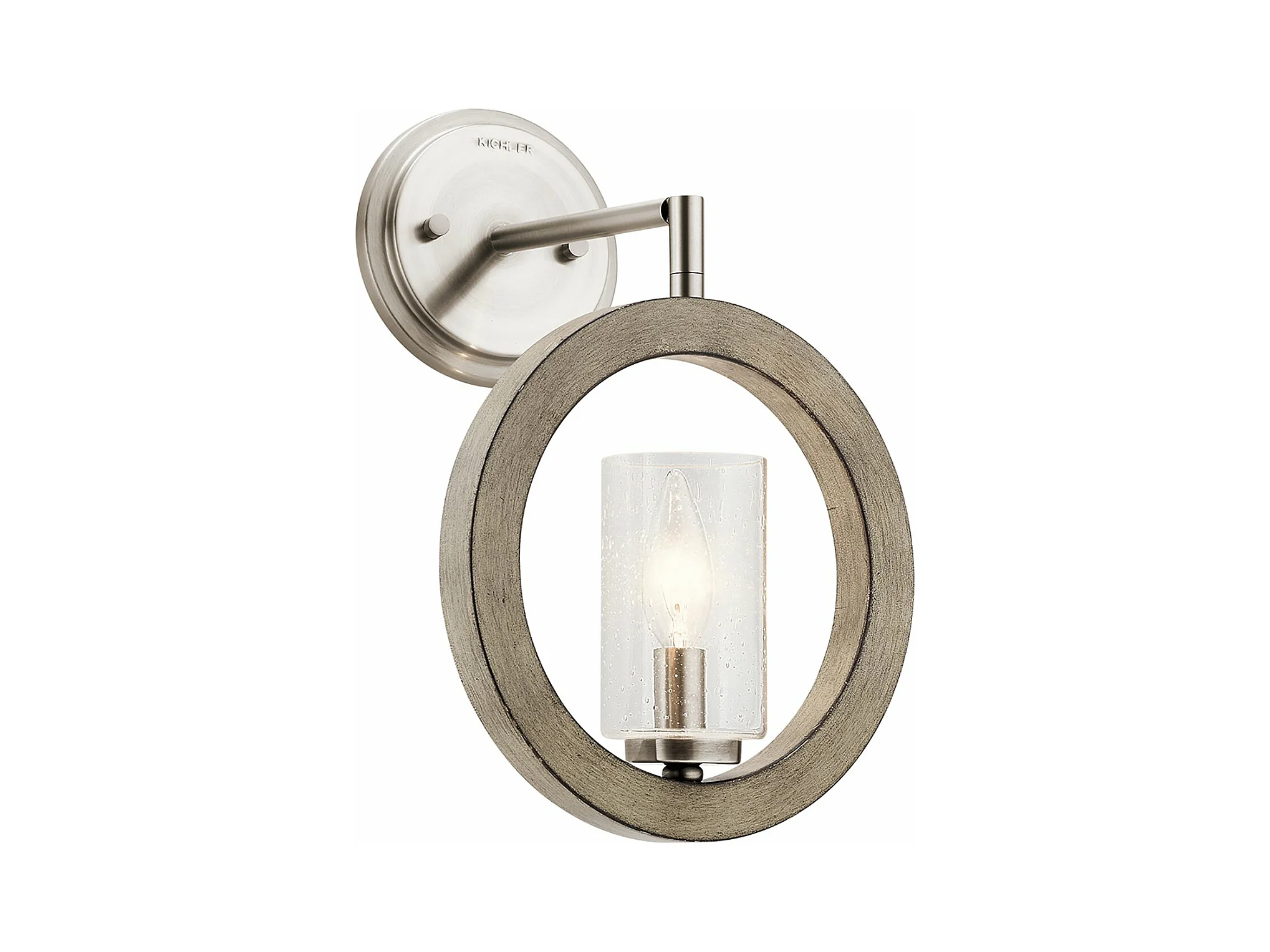 Lampadario Classico Maryville Acciaio Grigio Slavato Legno 6 Luci E14