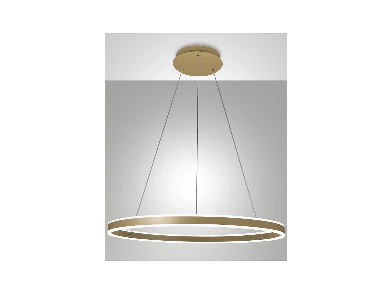 Krizia - Lámpara colgante LED regulable 50W - 2900lm, luz cálida 3000K, aro oro cepillado, difusor opal, d. 60cm, IP20