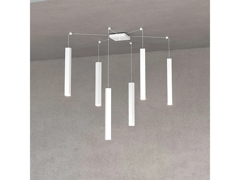 Square Tube Sospensione 6 Luci Bianco Cavo Cm.250 Con Base