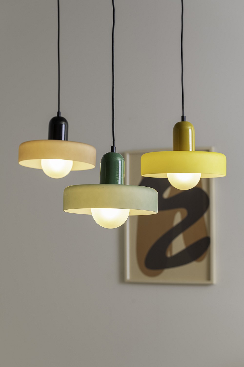 Lámpara Colgante Halo Moderno De Aluminio/Vidrio - 3 Fuentes Luminosas - L.25 X A.125 Cm - Verde Oliva