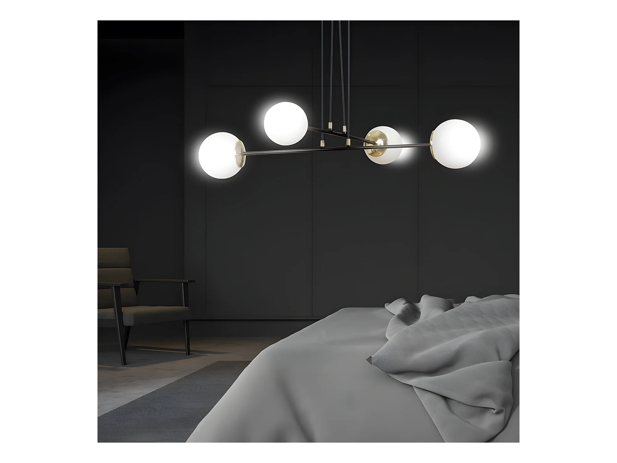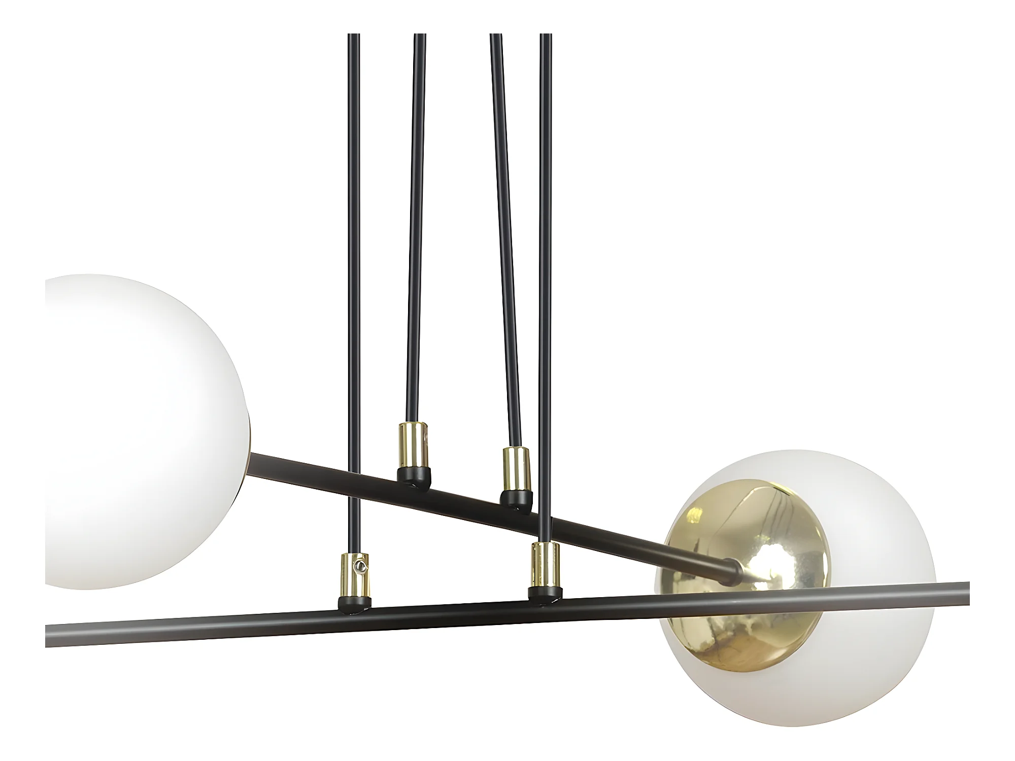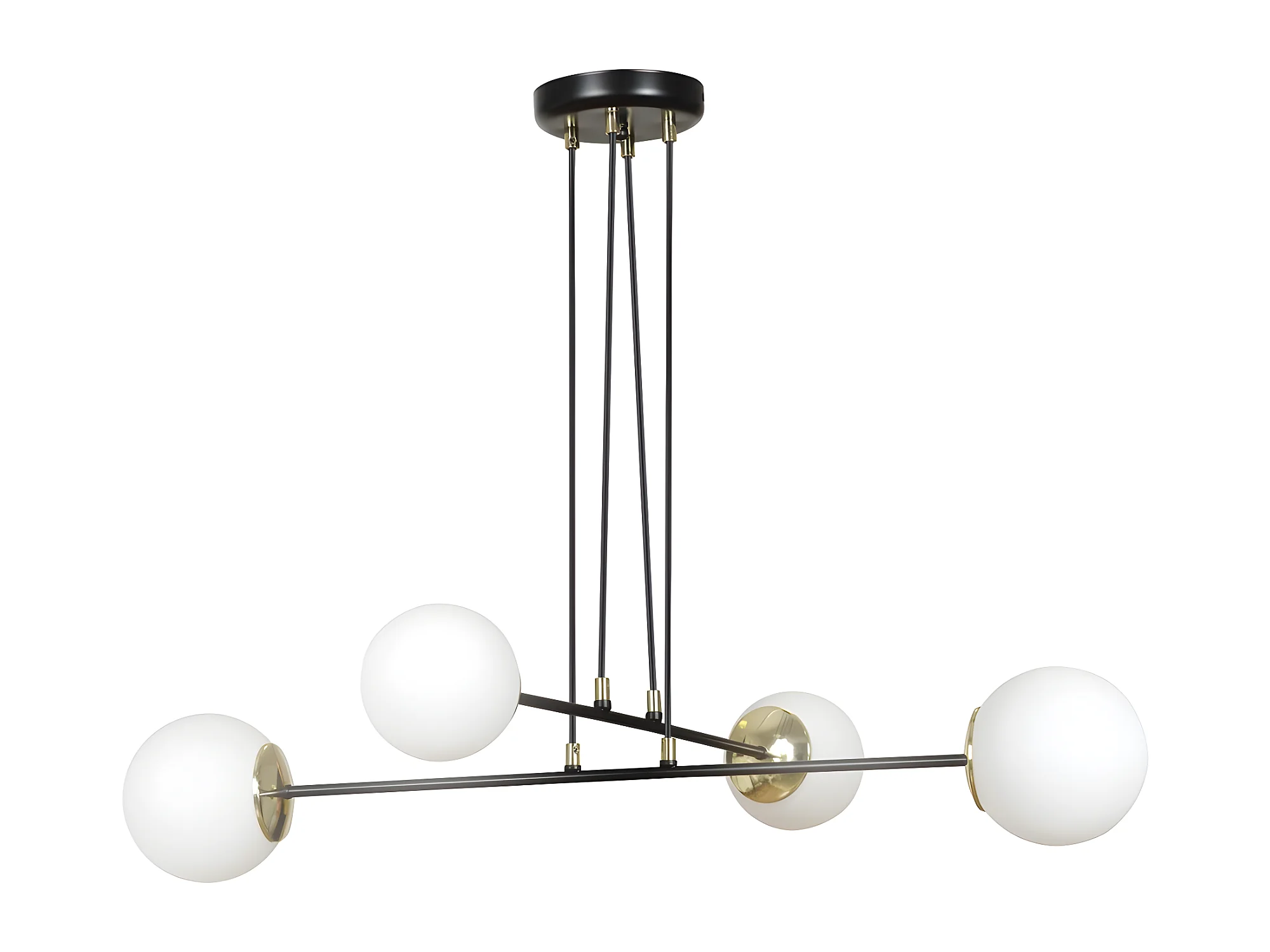 Lámpara colgante Megan negro con detalles dorados y 4 esferas de cristal 4xE14