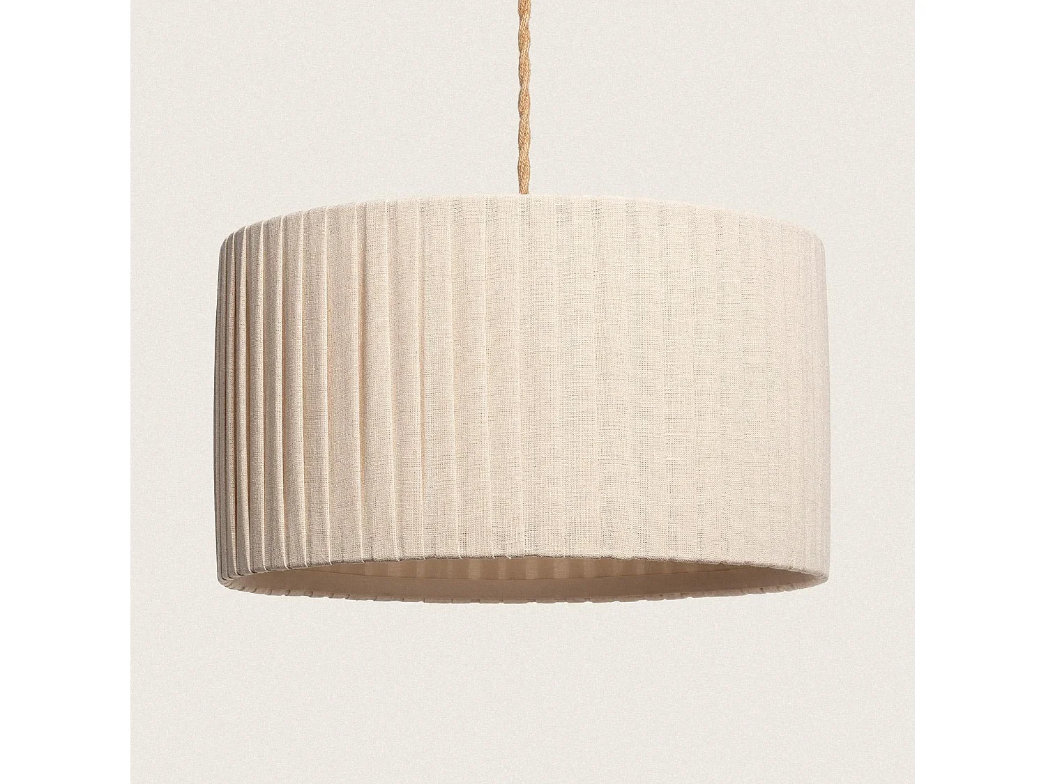 Lámpara colgante Sifonte con pantalla de lino blanco y franjas de ratán 1xE27 ø40cm