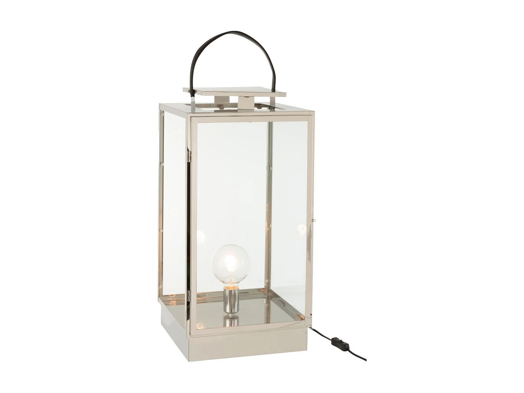 Lámpara cuadrada de metal plateado de 31.5x30x76 cm