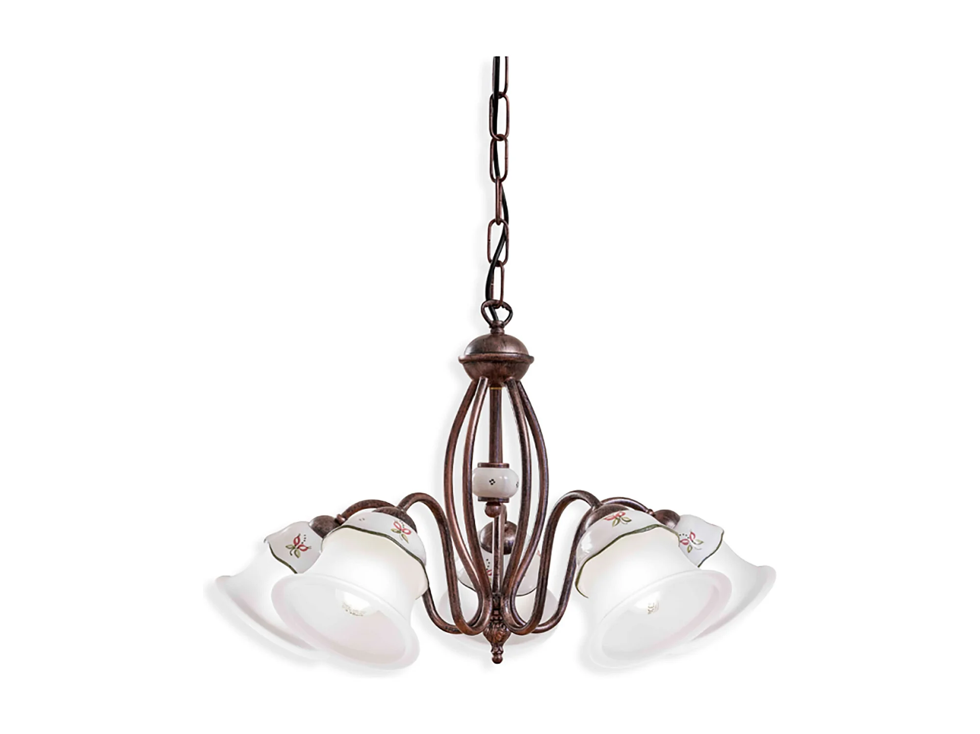 Lampadario Classico Napoli Metallo E Ceramica Nero Sfumato Rame 3 Luci E14